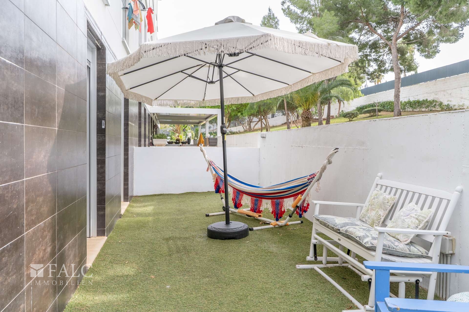 Diese hochwertige Erdgeschosswohnung befindet sich in Palmanova, in der Calle Pinzons, einer der etabliertesten und gefragtesten Wohnlagen im Südwesten Mallorcas. Die Immobilie liegt in einer modernen und sehr gepflegten Wohnanlage, die durch ihre funktionalen Gemeinschaftsbereiche und ihr angenehmes, privates Wohnumfeld überzeugt.