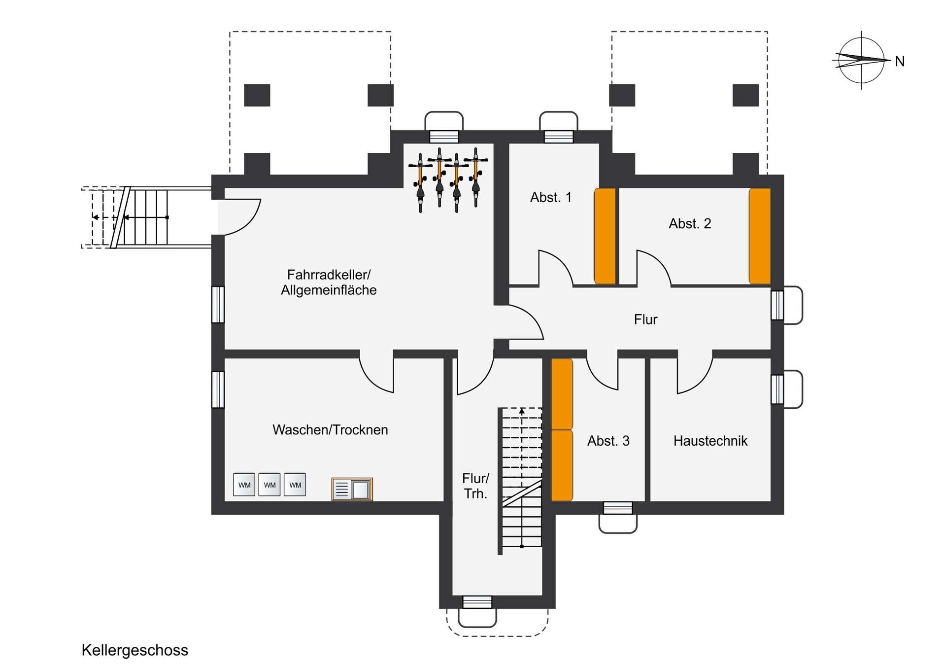 Zur Wohnung gehören ein großer Gemeinschafts-Waschraum, ein riesiger Gemeinschaftskeller, sowie ein ca. 12 m² großer eigener Kellerraum. Abgerundet wird das Angebot durch zwei PKW-Stellplätze, die im Preis bereits inkludiert sind