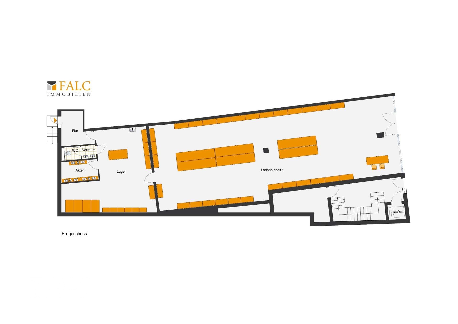 Durch den klar strukturierten Grundriss, die großzügige Schaufensterfront und die vielseitige Nutzbarkeit eignet sich die Fläche ideal für Einzelhandel, Atelier, Studio oder kundenorientierte Dienstleistungsbetriebe.