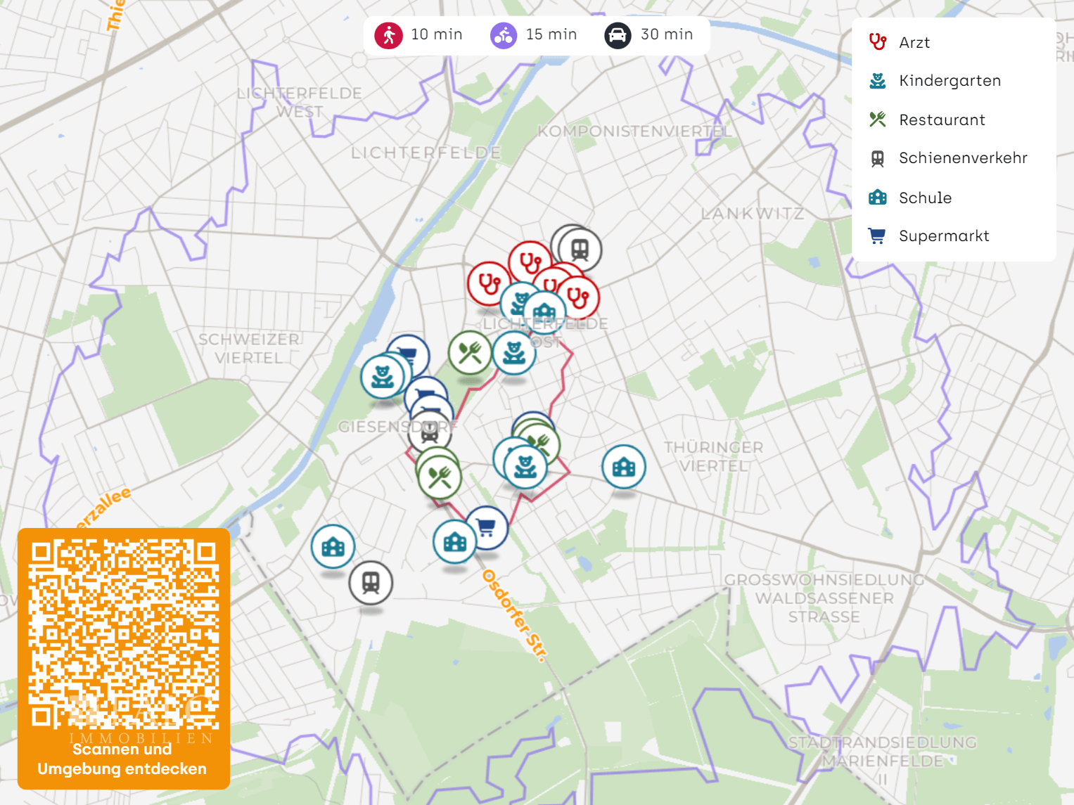 Lichterfelde gilt seit Jahren als gefragter Wohnstandort bei Kapitalanlegern und Eigennutzern, welche Wert auf eine ruhige, aber dennoch gut angebundene Wohnlage legen. Unsere exklusive Standortanalyse gibt Ihnen einen umfassenden Einblick in die nähere Umgebung.