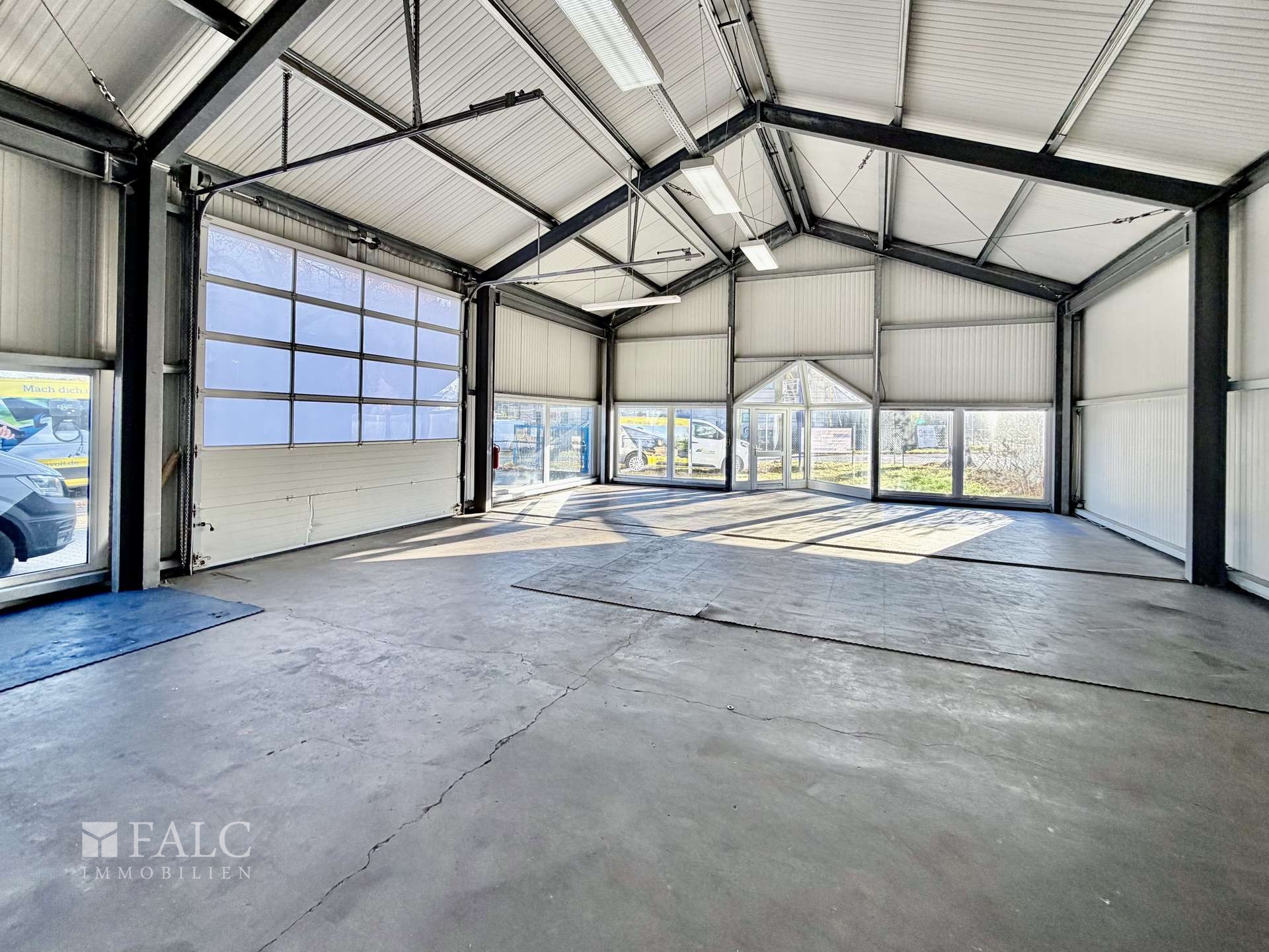 - Halle mit Sektionaltoren (Breite ca. 3,5 m) beidseitig ca. 84 m²