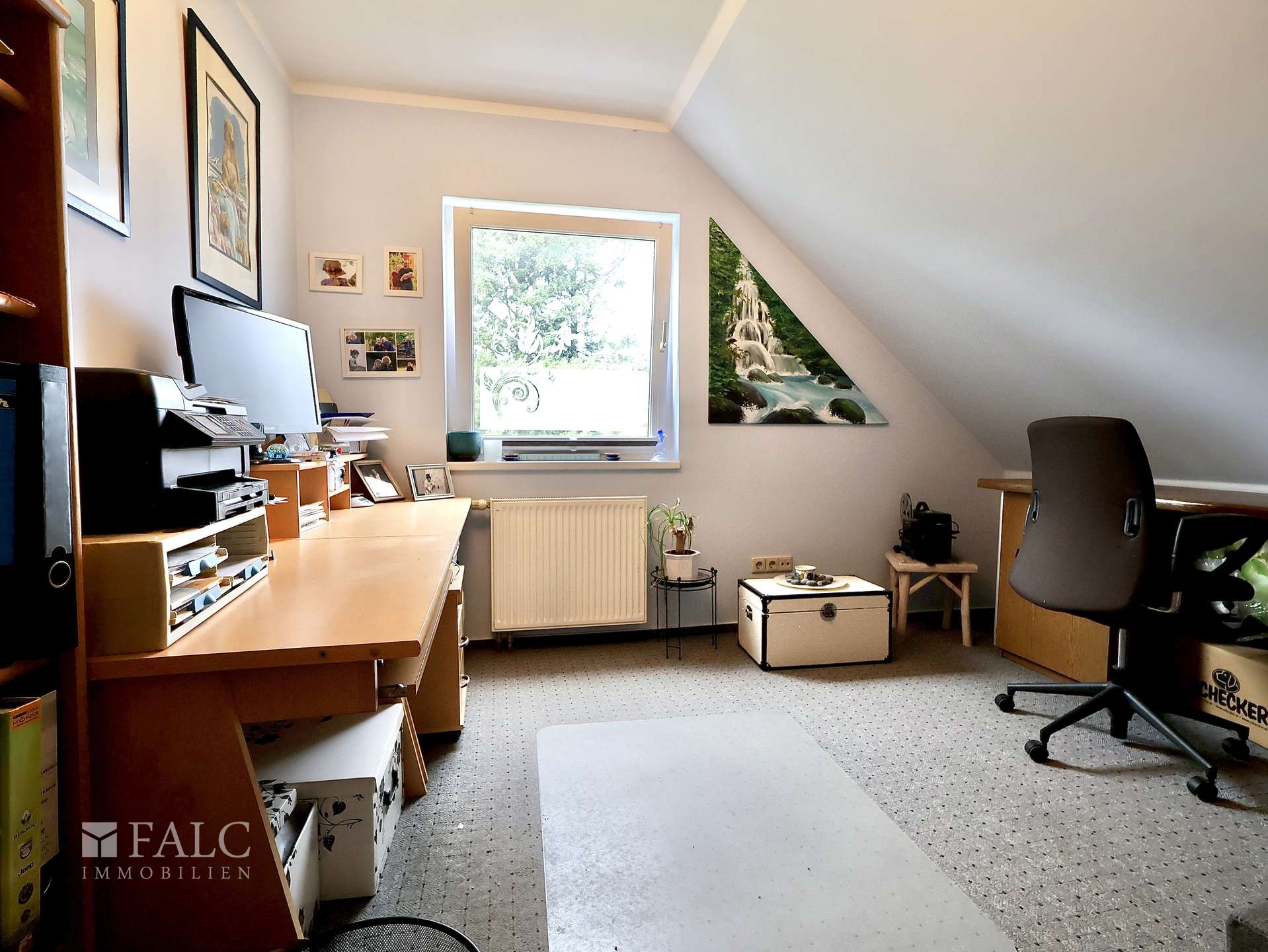 Hinauf ins Dachgeschoss geht es über eine wertige Holztreppe. In dieser Etage finden Sie alles, was Sie benötigen: ein Arbeitszimmer, zwei Kinderzimmer sowie den Hauswirtschaftsraum. Über eine Raumspartreppe gelangen Sie zum Spitzboden, welcher Stauraum für Ihre Utensilien bietet.