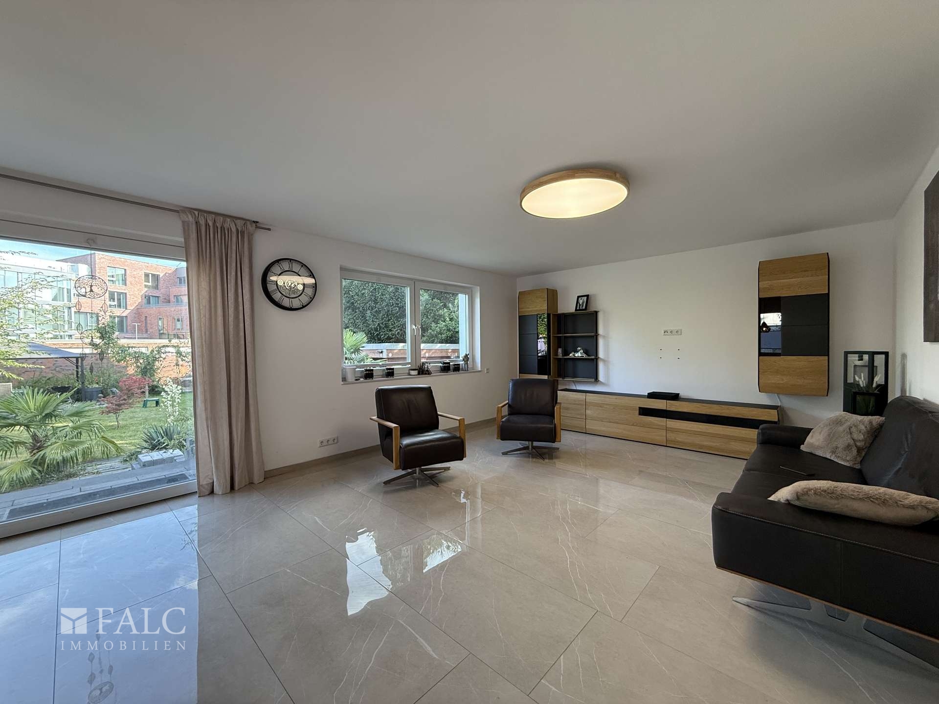 Bereits beim Betreten des Hauses empfängt Sie ein einladender und großzügiger Eingangsbereich, der einen ersten Eindruck vom stilvollen und gepflegten Ambiente des Hauses vermittelt. Das helle Wohnzimmer, das im Jahr 2022 durch einen Anbau erweitert wurde, besticht durch seine großen Fensterflächen, die nicht nur für ein angenehmes Tageslicht sorgen, sondern auch einen wunderschönen Blick in den liebevoll angelegten Garten ermöglichen. Hier lässt es sich entspannen, genießen oder gemeinsam mit der Familie Zeit verbringen.