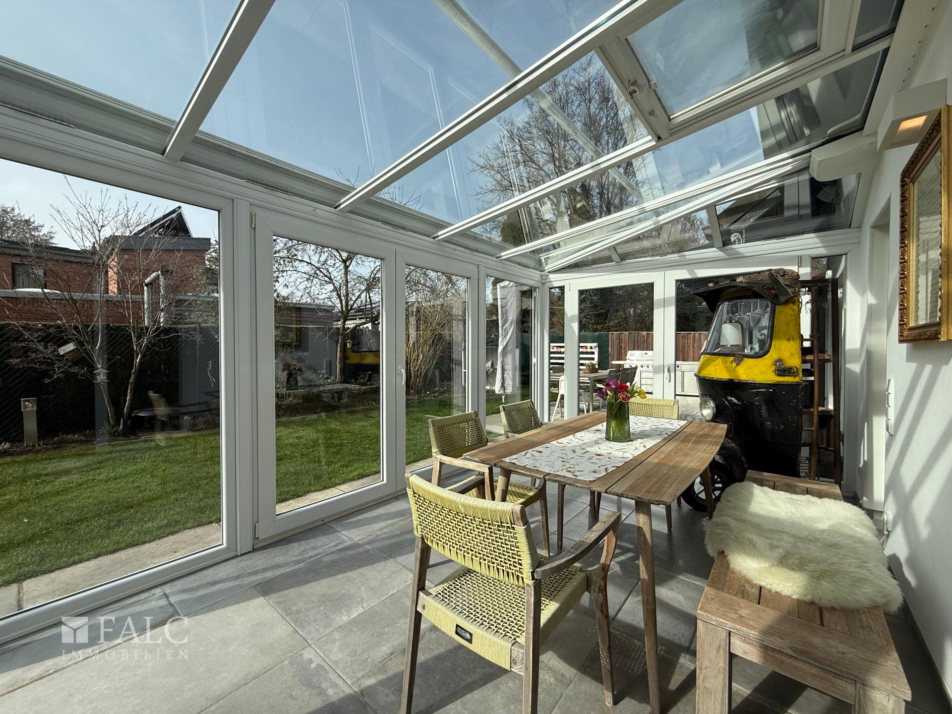 Lichtdurchfluteter Wintergarten mit Fußbodenheizung und Warema-Markisen