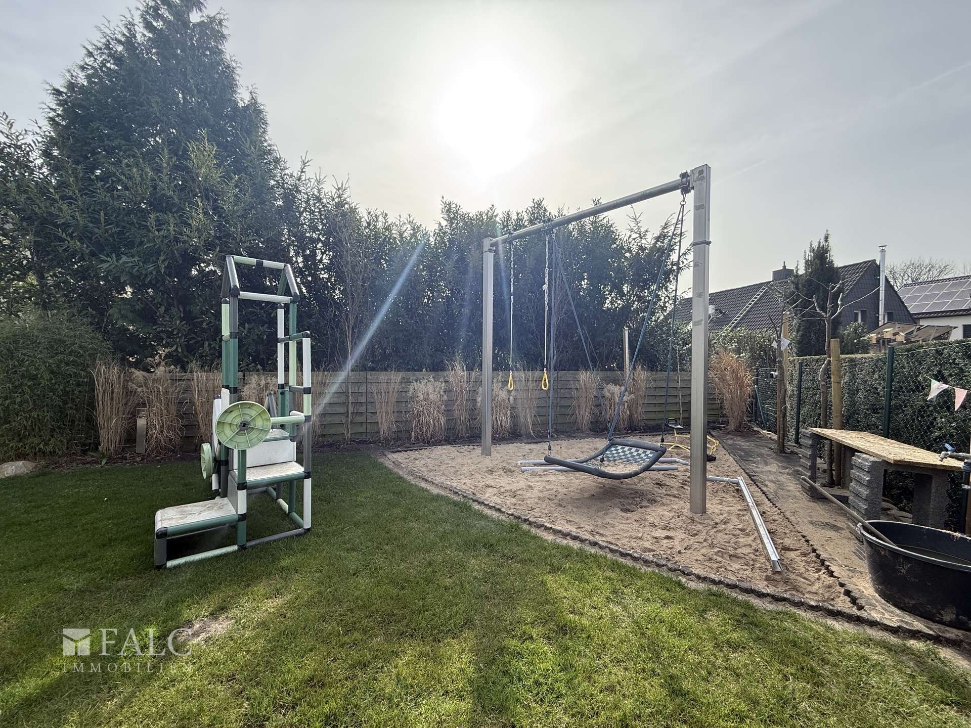 Attraktiver Garten mit Spielbereich und Schaukelanlage