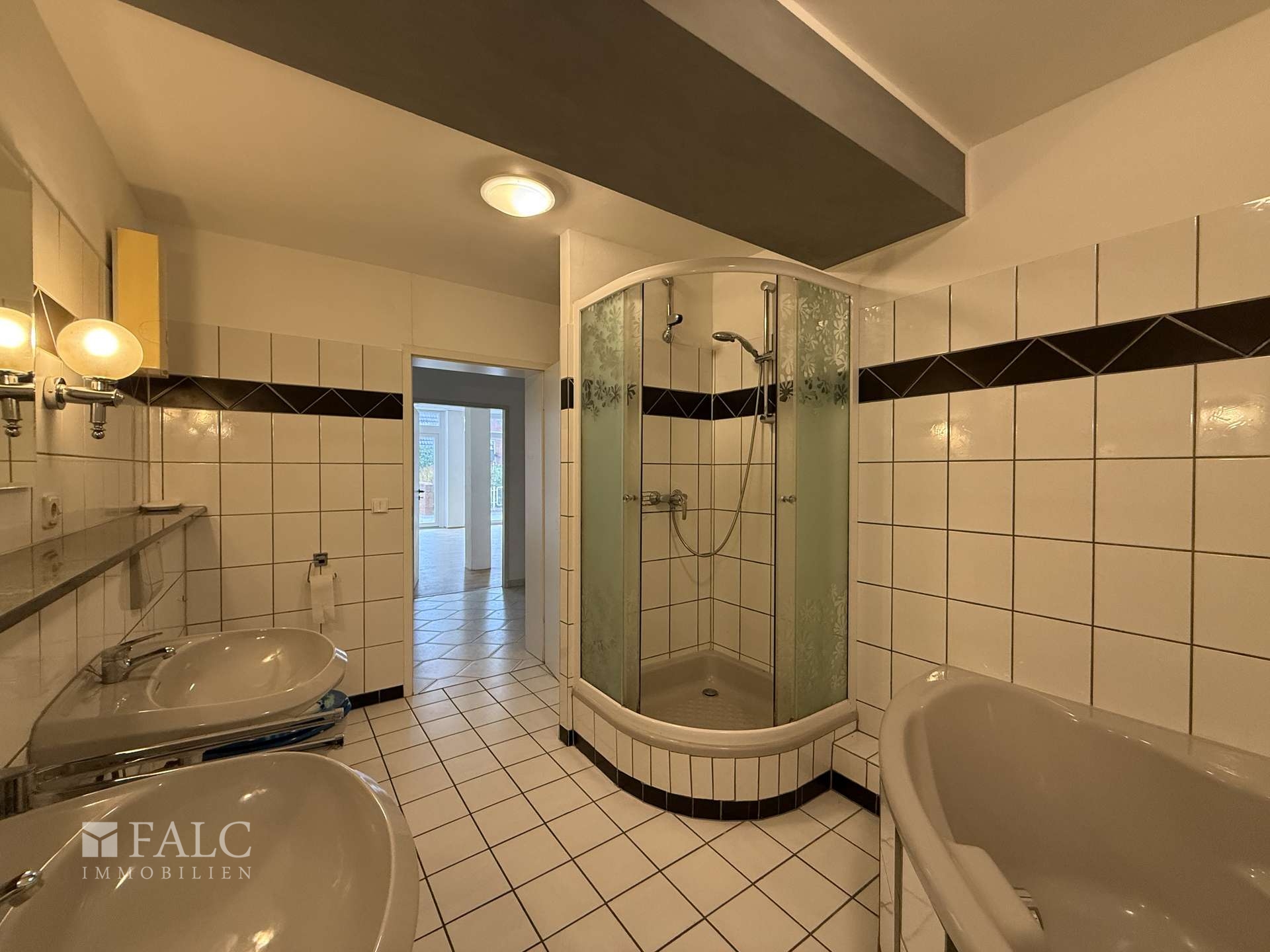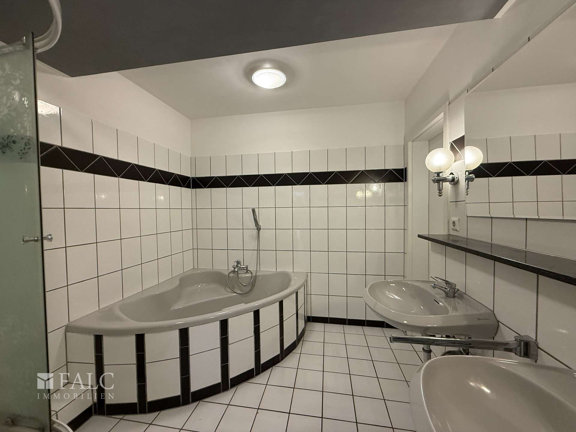 Das Badezimmer ist sowohl mit einer Badewanne als auch mit einer separaten Dusche ausgestattet und erfüllt damit unterschiedliche Komfortansprüche im Alltag. Das zusätzliche Gäste-WC sorgt für weiteren Komfort.
