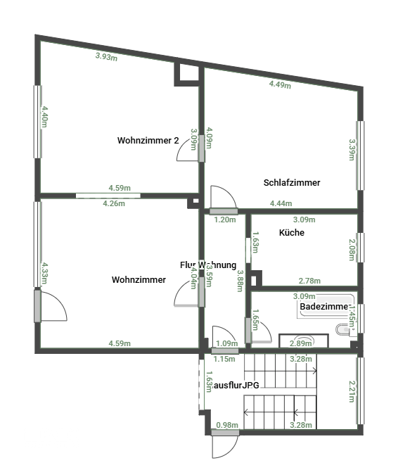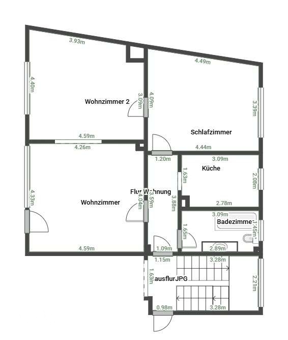 Diese 3-Raum-Wohnung ist im Erdgeschoß und bietet Ihnen eine optionale Raumaufteilung, bei der zwei Zimmer durch einen breiten Durchgang verbunden sind und ideal für ein offenes Wohnkonzept oder kreative Gestaltungsmöglichkeiten ist.