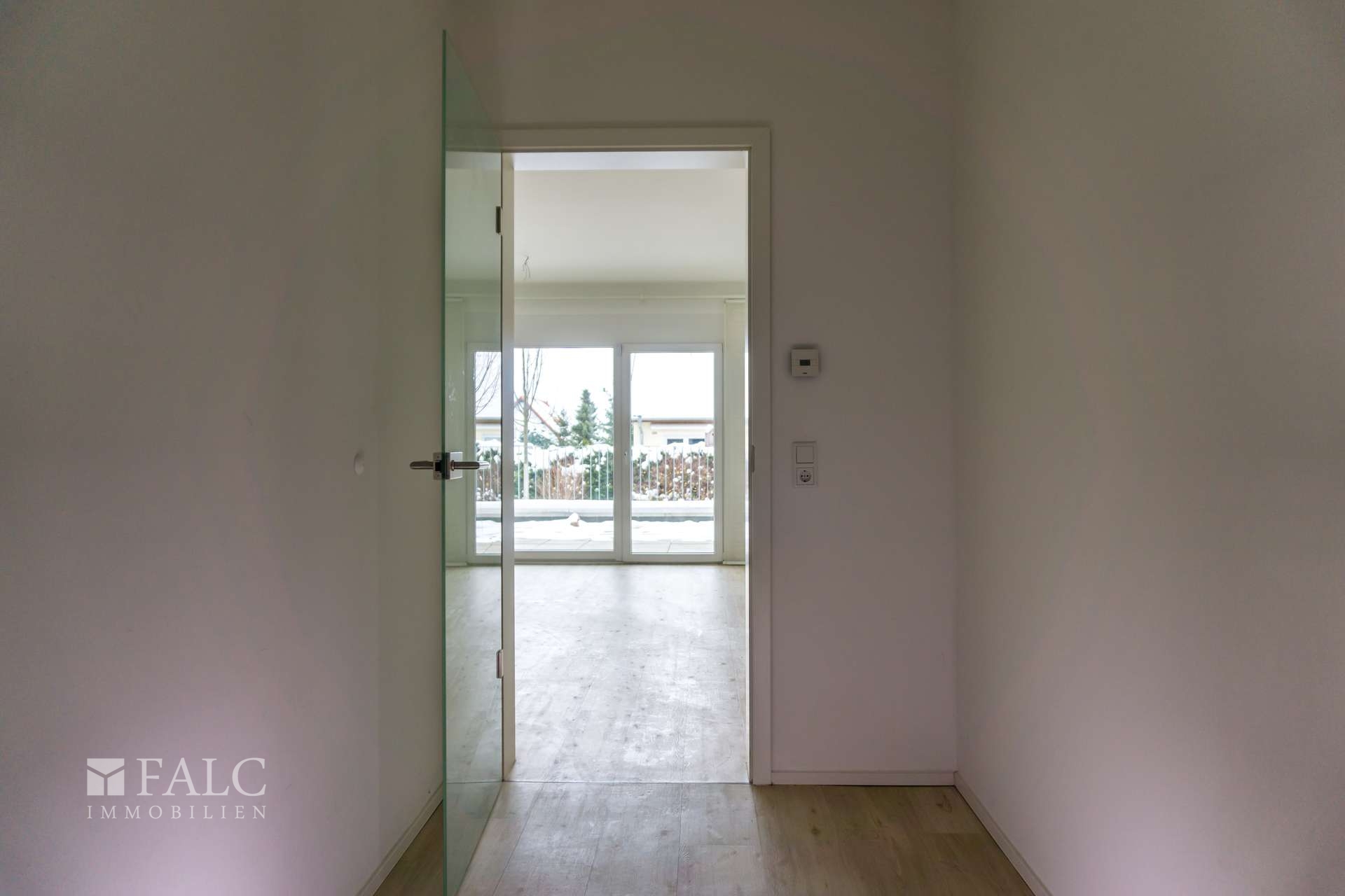 • Hochwertige Glastür trennt den Dielenbereich vom Wohnzimmer