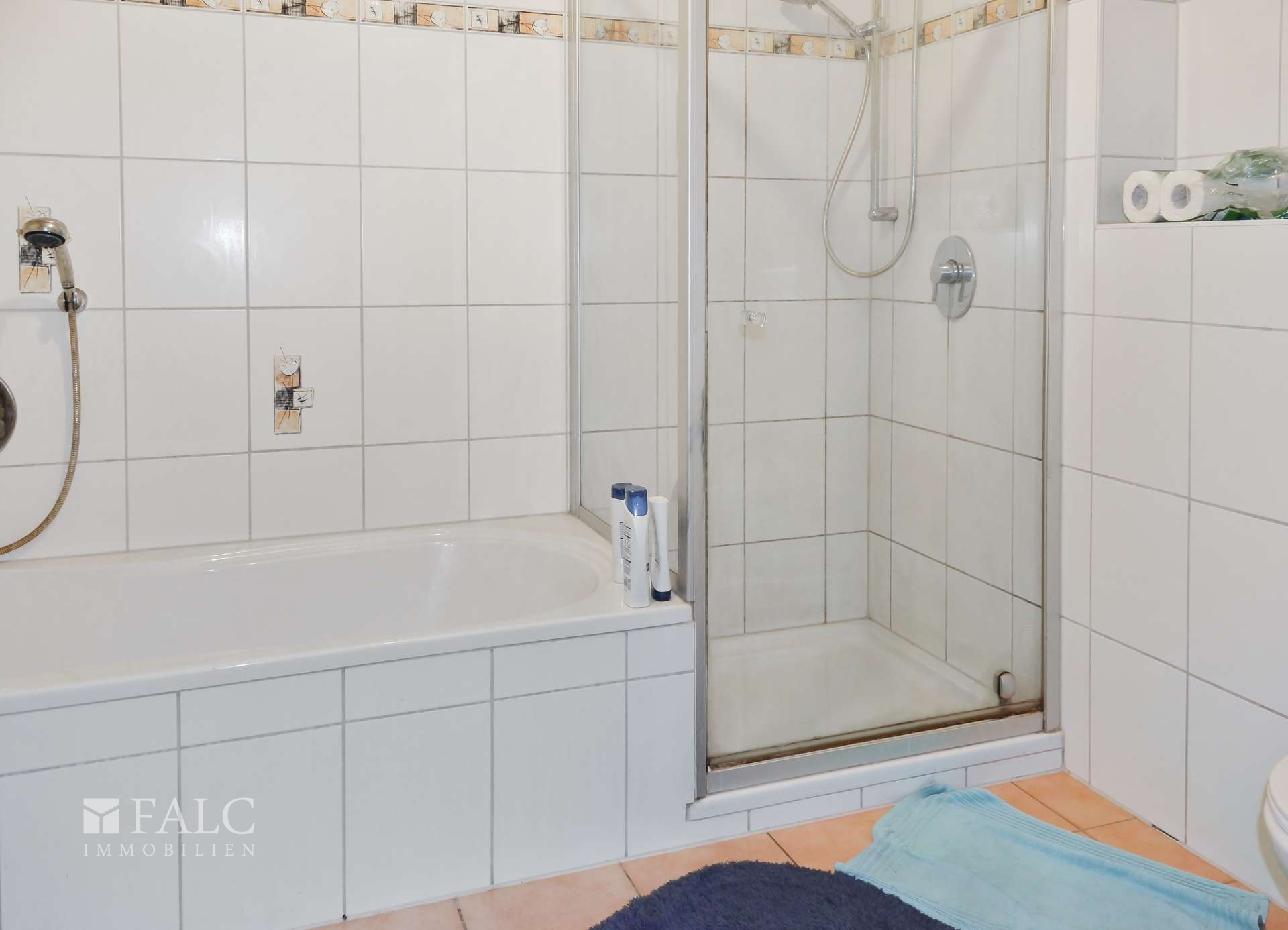 • Großzügiges Tageslichtbad mit Badewanne, Dusche, Waschbecken und WC