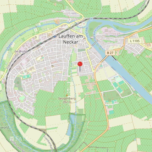 Die Wohnung ist idyllisch nahe dem Neckar gelegen und befindet sich trotzdem unweit vom Zentrum am südlichen Rand von Lauffen am Neckar. Alle Einrichtungen des täglichen Bedarfs lassen sich bequem und in nur wenigen Minuten erreichen. Für weitere Strecken im Innenstadtverkehr in Lauffen a. N. steht der Lauffener City-Bus zur Verfügung. Circa 140 Meter entfernt befindet sich eine Bushaltestelle, somit ist auch die Innenstadt Heilbronns bequem zu erreichen. Auch mit dem Auto gelangen Sie in weniger als 20 Minuten in die Heilbronner Innenstadt.