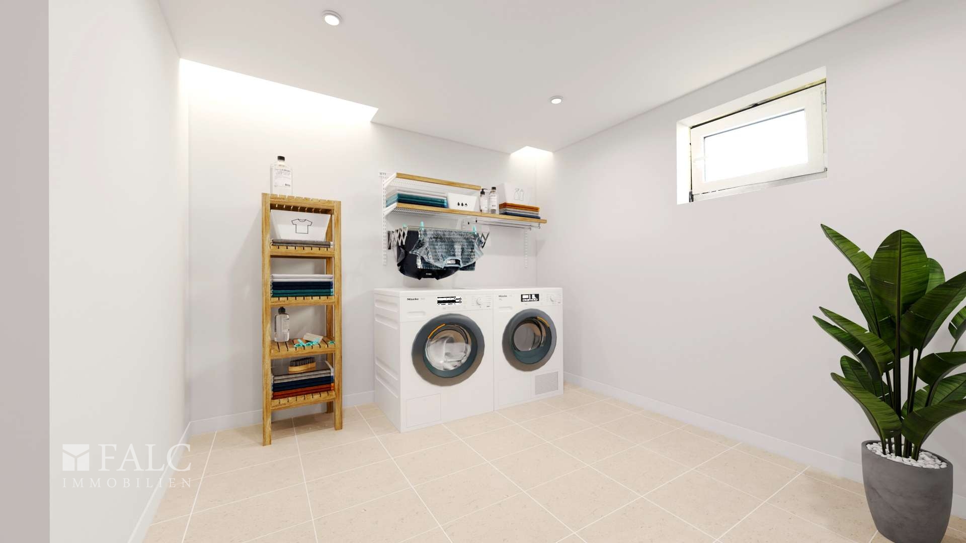 Im Untergeschoss stehen Ihnen weitere praktische Räume zur Verfügung: Ein Hauswirtschaftsraum, ein geräumiger Abstellraum sowie ein separater Technikraum und eine Waschküche sorgen für Ordnung und Funktionalität im Alltag. Damit bleibt die Wohnfläche in den oberen Geschossen frei für das Wesentliche, nämlich Ihrem Wohlfühlambiente.
