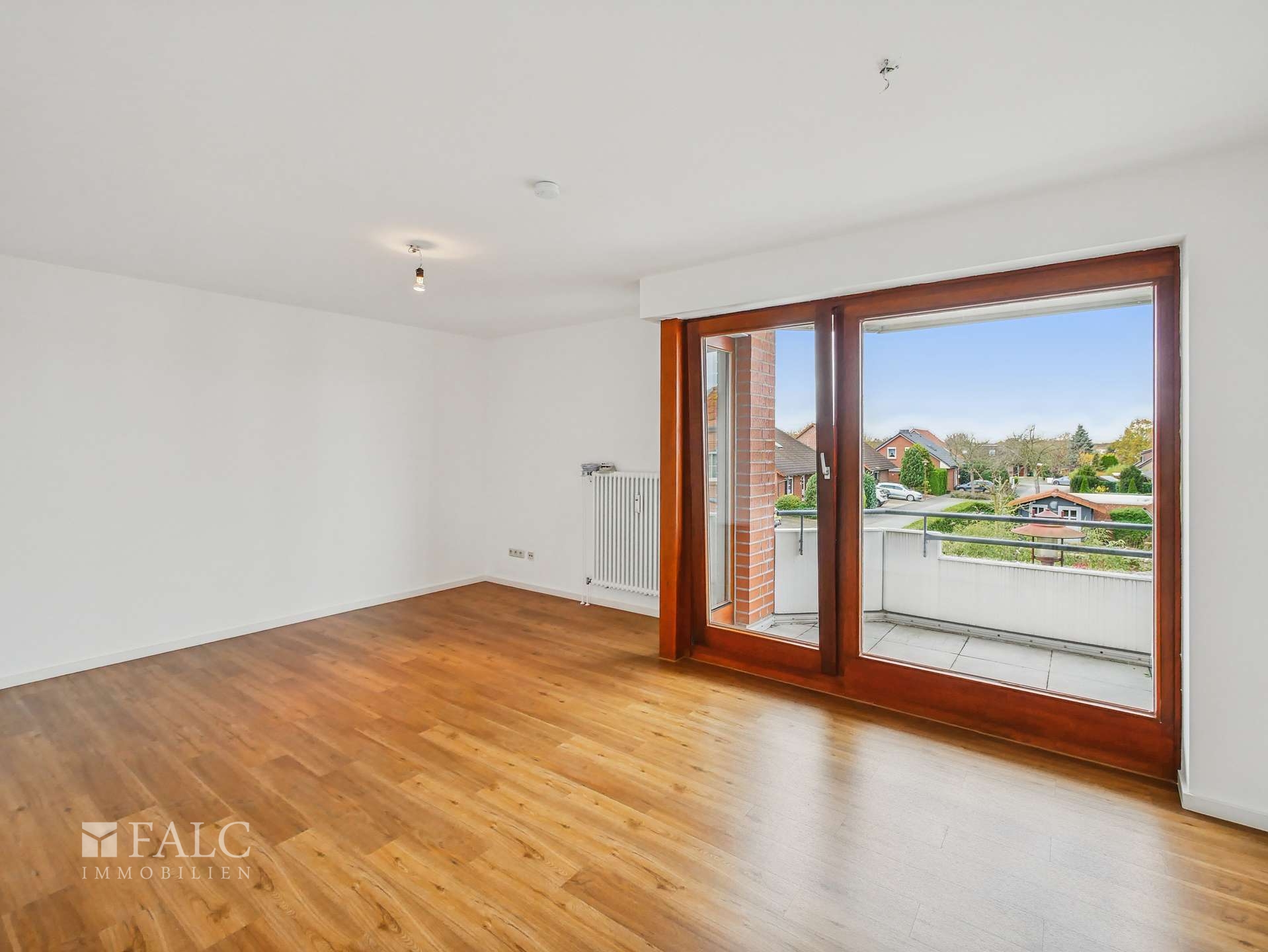 Weiter geht es in das geräumige Wohnzimmer, das ausreichend Platz für einen gemütlichen Wohnbereich bietet. Die großen Fenster und der Zugang zum Balkon sorgen für eine helle und freundliche Atmosphäre. Der Balkon selbst lädt dazu ein, entspannte Stunden im Freien zu verbringen und bietet einen schönen Ausblick auf die Umgebung.