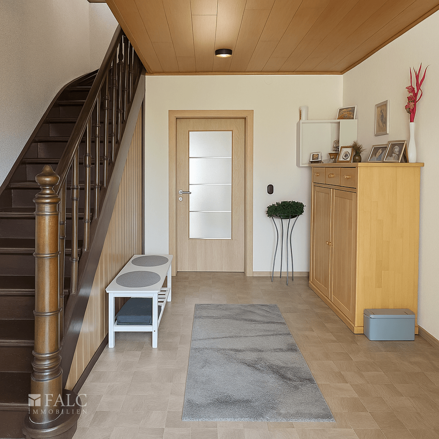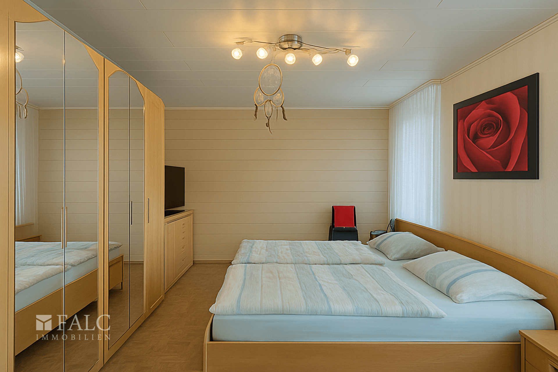Auch praktisch weiß dieses Haus zu überzeugen: Der Vollkeller, die Garage und der Spitzboden eröffnen vielseitige Nutzungsmöglichkeiten – sei es als Stauraum, Werkstatt, Hobbyraum oder zusätzlicher Rückzugsort. Beheizt wird das Haus durch eine Gas-Zentralheizung aus 2011, während Elektrik und Leitungen aus den 1980er-Jahren stammen – eine solide Basis, die Sie nach Ihren Wünschen modernisieren können.
