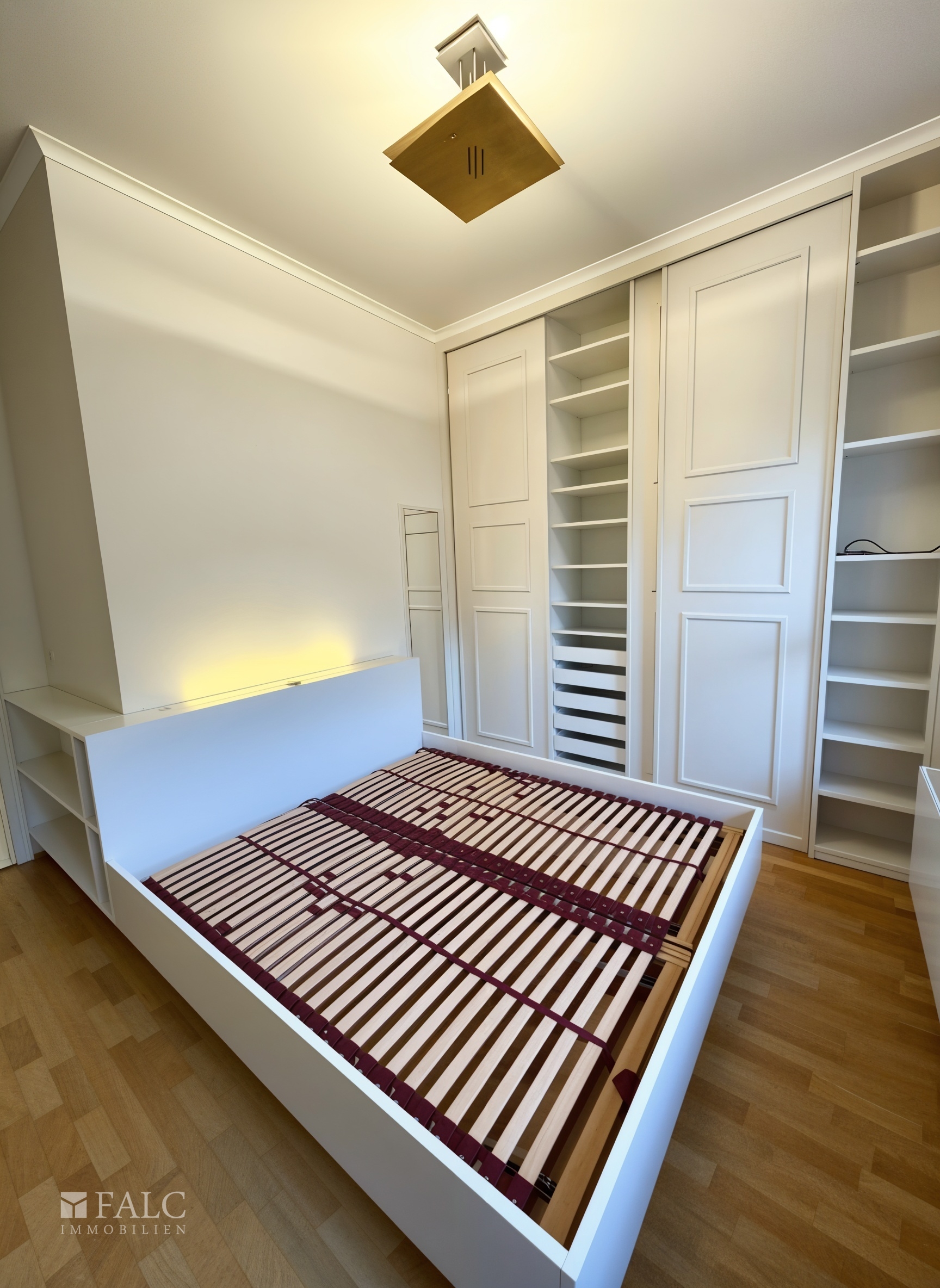 Vom Wohnzimmer aus erreichen Sie das gemütliche Schlafzimmer, das mit einem großen Einbauschrank ausgestattet ist. Hier finden Sie ausreichend Platz für Ihre persönlichen Dinge.