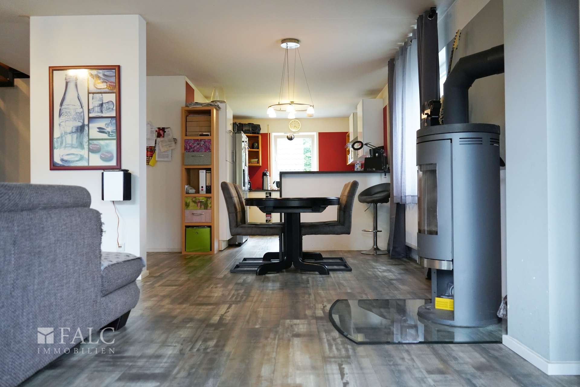 Das Wohnzimmer ist geräumig und lichtdurchflutet, ideal für gemütliche Abende mit der Familie. Von hier aus gelangen Sie auf die Terrasse, die einen schönen Blick auf den gepflegten Garten bietet. Die moderne Küche ist funktional gestaltet und mit hochwertigen Geräten ausgestattet, perfekt für Hobbyköche.