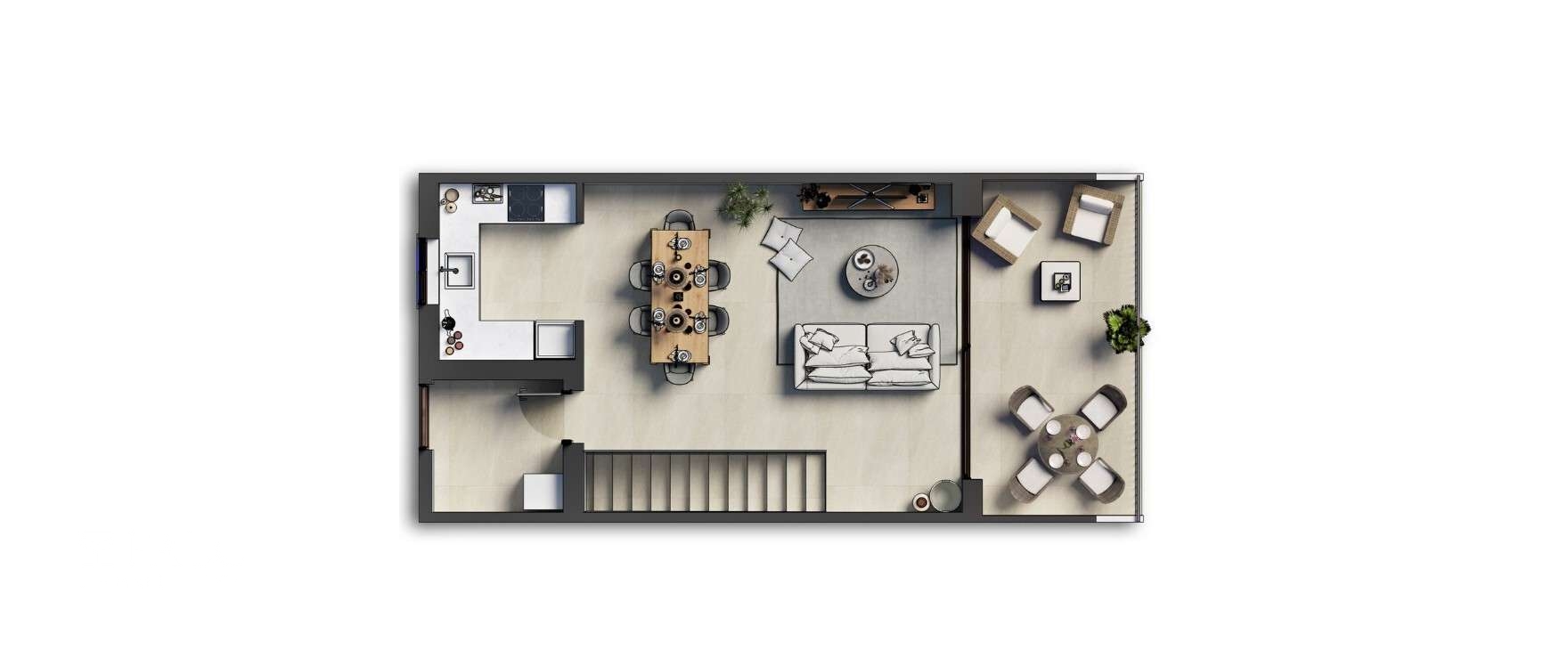 Die Reihenvillen überzeugen mit zwei Etagen, sonnigen Terrassen im Erd- und Obergeschoss und viel Raum für gemeinsame Momente – ob beim Frühstück im Freien oder bei einem Glas Wein im Sonnenuntergang.