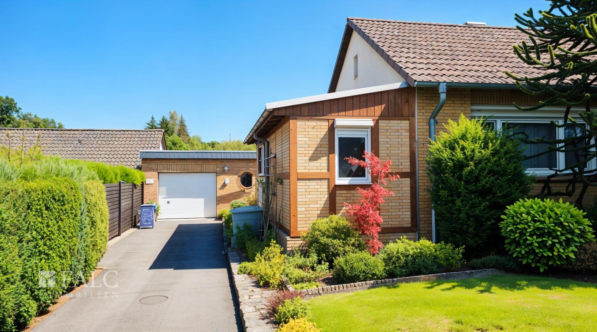 Das Haus bietet somit insgesamt auf einer Wohnfläche von ca. 110 m² im Erdgeschoss drei Zimmer, Küche und Badezimmer mit Wannenbad und Dusche. Bis auf die Küche finden Sie in allen Räumen elektrische Rollläden vor.
