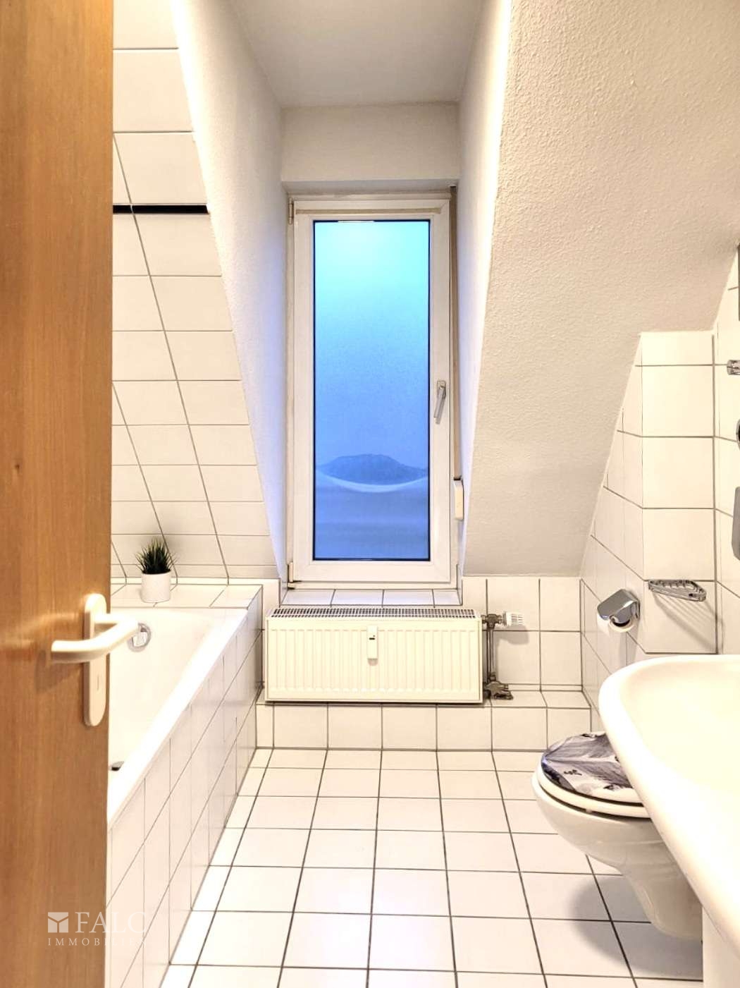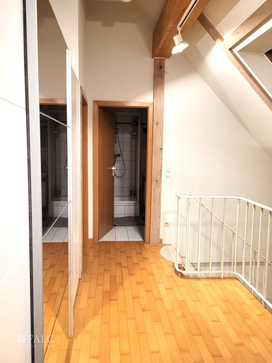 Die ca. 104 m² große und ruhige Wohnung verfügt über ein Wohn/ Esszimmer mit Zugang zum Balkon und eine abgeschlossene Küche. Ein Schlafzimmer und ein modernes Badezimmer mit Wanne, Dusche und WC befinden sich auf der gleichen Ebene. Oben im Bereich der Empore gibt es ebenfalls ein Schlafzimmer und ein Bad mit WC.