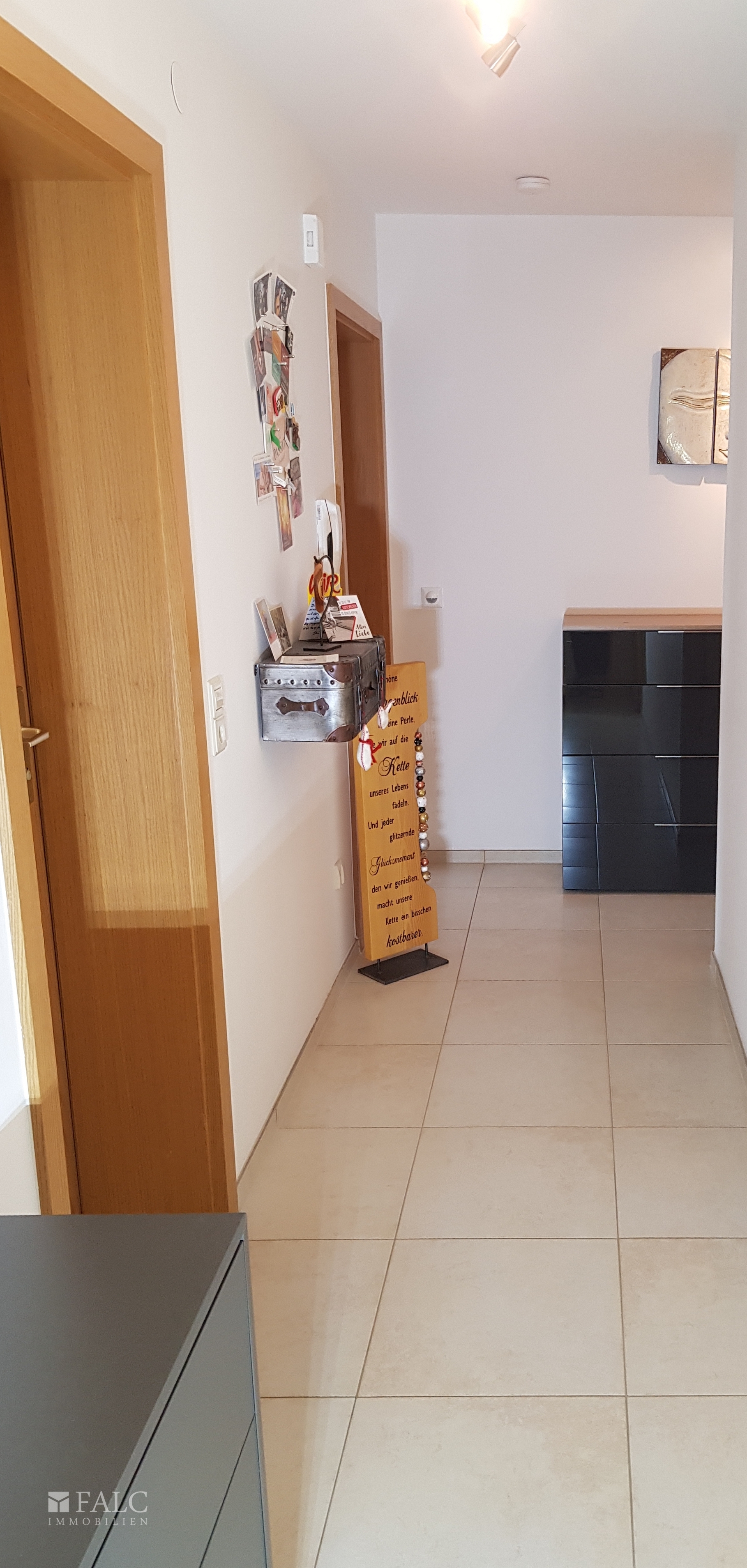 Der einladende Eingangsbereich führt in einen hellen Flur, der die Räume der Wohnung miteinander verbindet.