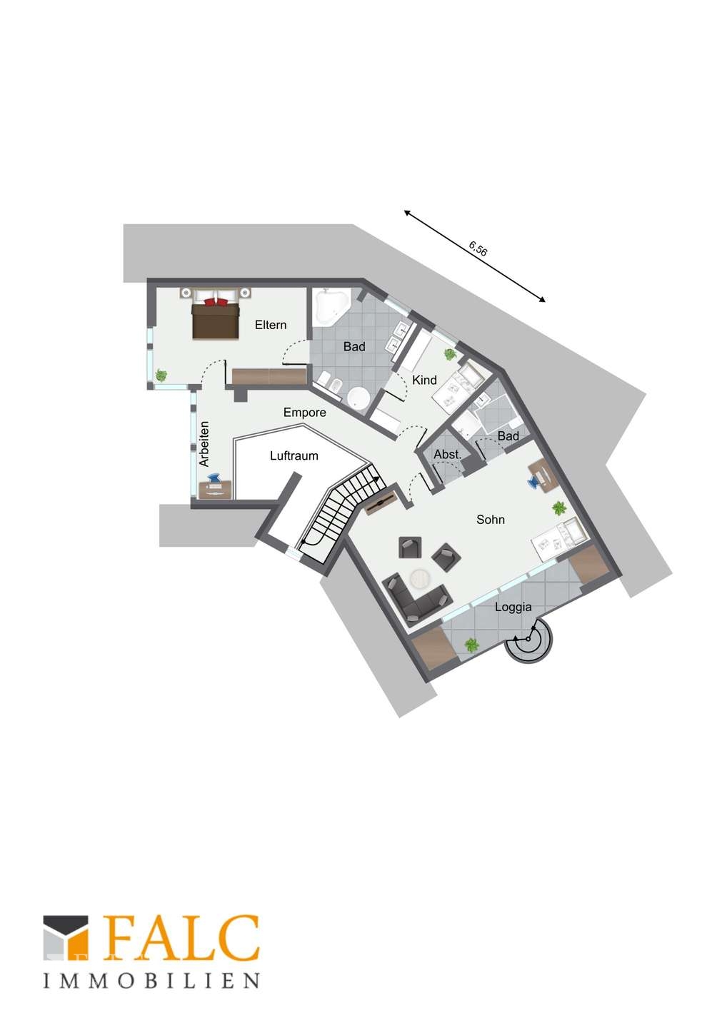 Im Dachgeschoss setzt sich das großzügige Raumkonzept fort. Neben Schlaf und Kinderzimmern bietet die Galerie zusätzliche Fläche, die sich je nach Bedarf als Leseecke, Arbeitsbereich oder Rückzugszone nutzen lässt. Das Badezimmer präsentiert sich modern und hochwertig gestaltet, mit einer klaren Linienführung und zeitgemäßer Ausstattung.