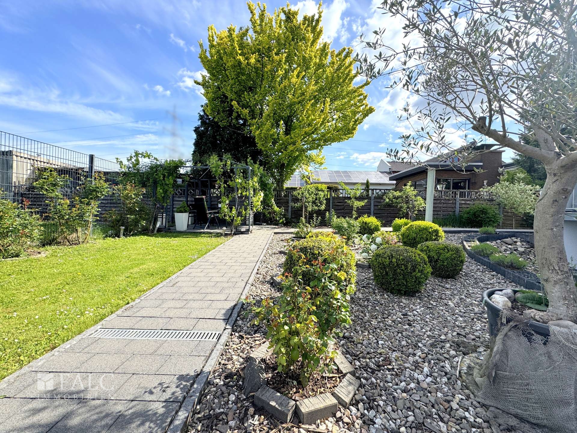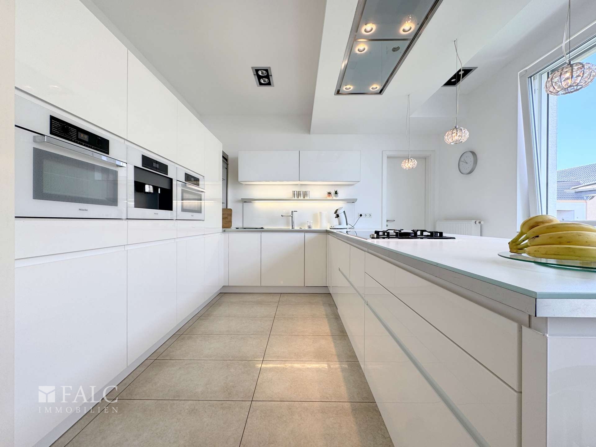 Was die Energieeffizienz betrifft, so ist das Haus mit einer hochwertigen 3-fach verglasten Fensterfront ausgestattet, die für eine hervorragende Dämmung sorgt. Die Photovoltaikanlage auf dem Dach hat eine Leistung von 5,7 kWp und ermöglicht die Eigenproduktion von Strom. Durch die Einspeisevergütung trägt sie zusätzlich zur Wirtschaftlichkeit bei. Ergänzt wird das System durch Solarthermie, die die Warmwasserbereitung unterstützt. Diese nachhaltigen Maßnahmen reduzieren die Energiekosten erheblich und machen das Haus zukunftssicher und umweltfreundlich.