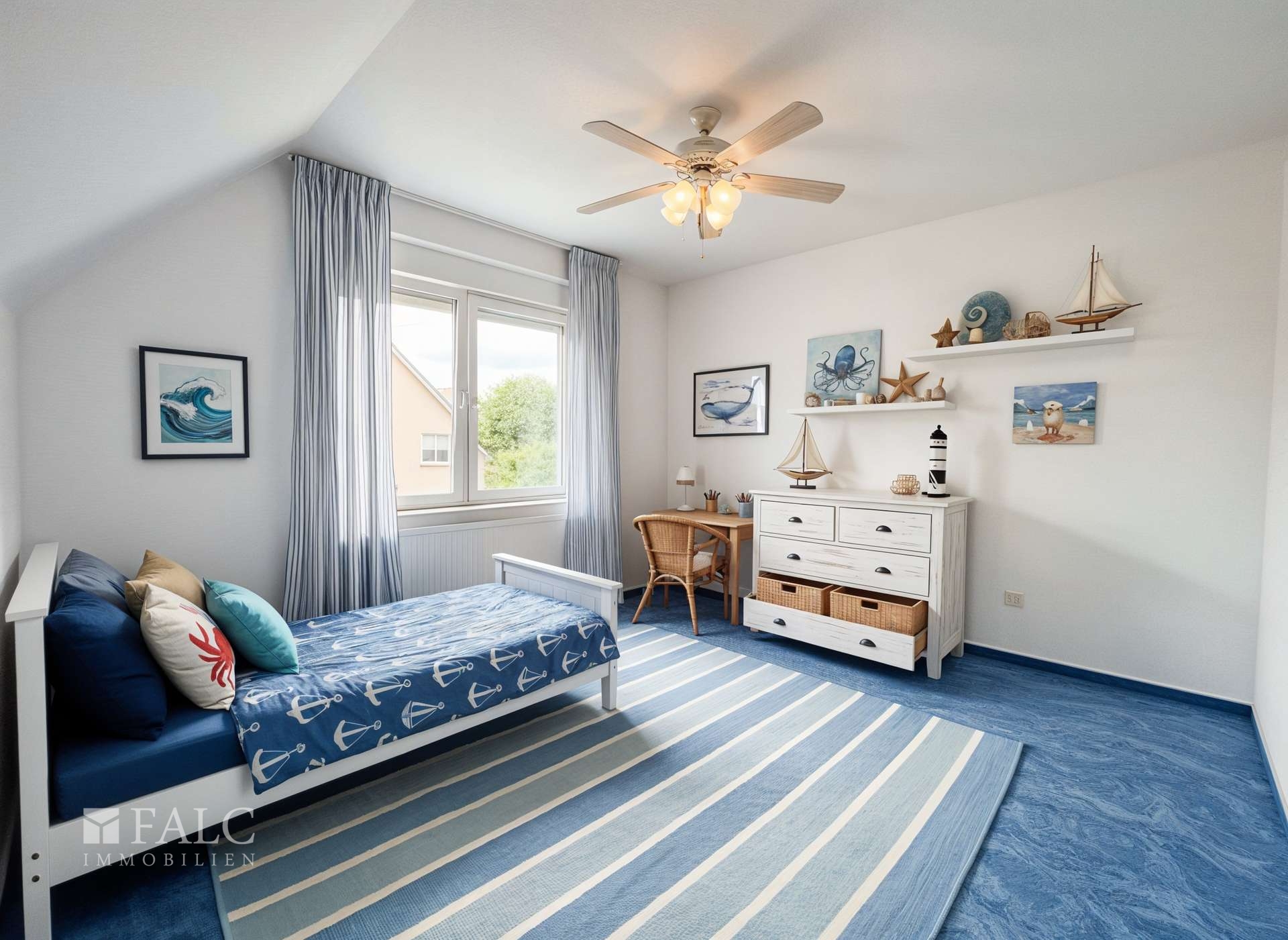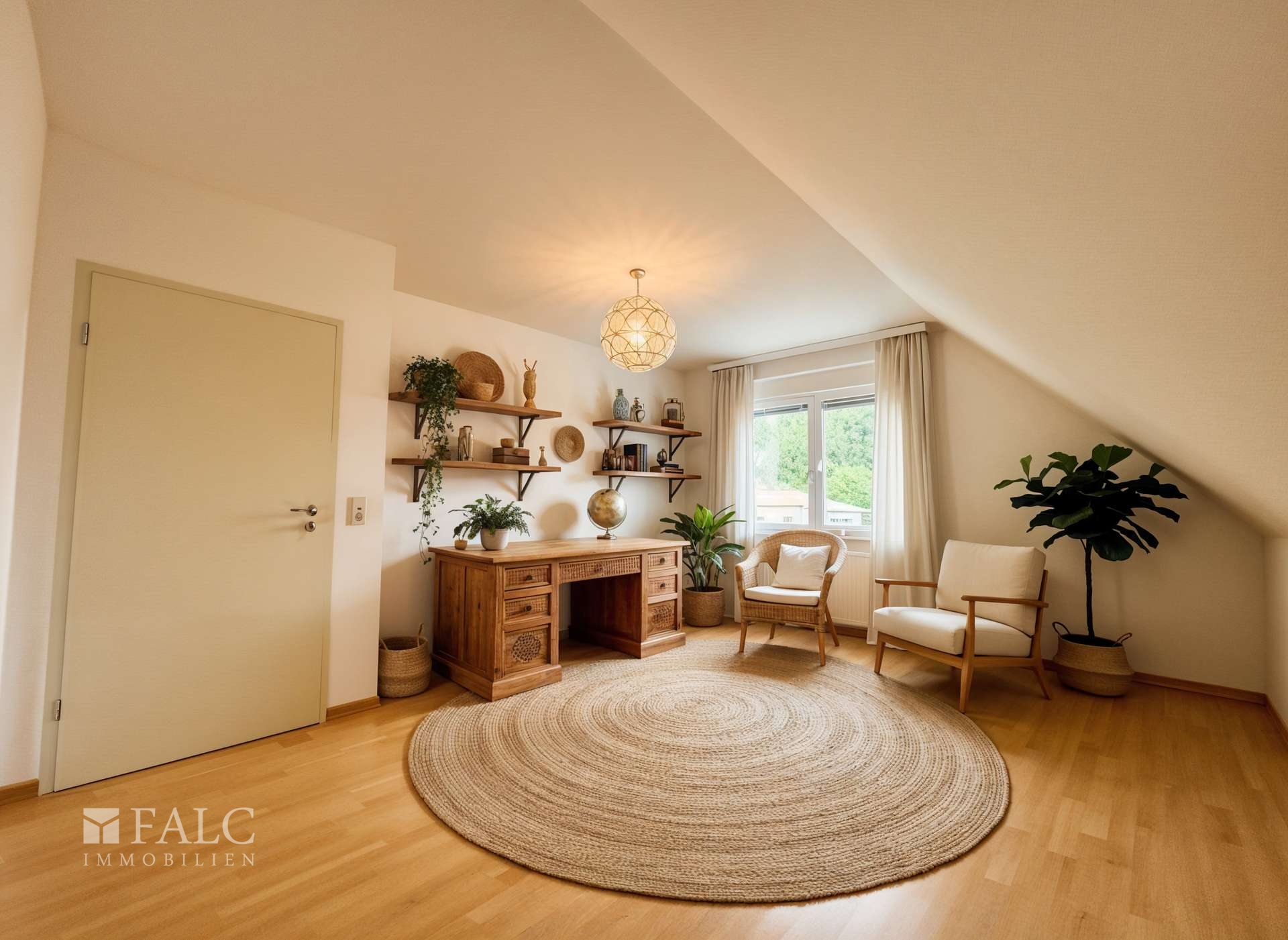 Im Obergeschoss erwarten Sie ein Schlafzimmer, ein Büro, ein weiteres Bad – und ein separater Bereich mit Küchenanschluss, Essbereich mit Zugang zum Balkon, zusätzlichem Schlafzimmer und Bad. Ideal für Gäste, Teenager oder als kleine Einliegerwohnung – charmant, durchdacht, vielseitig.