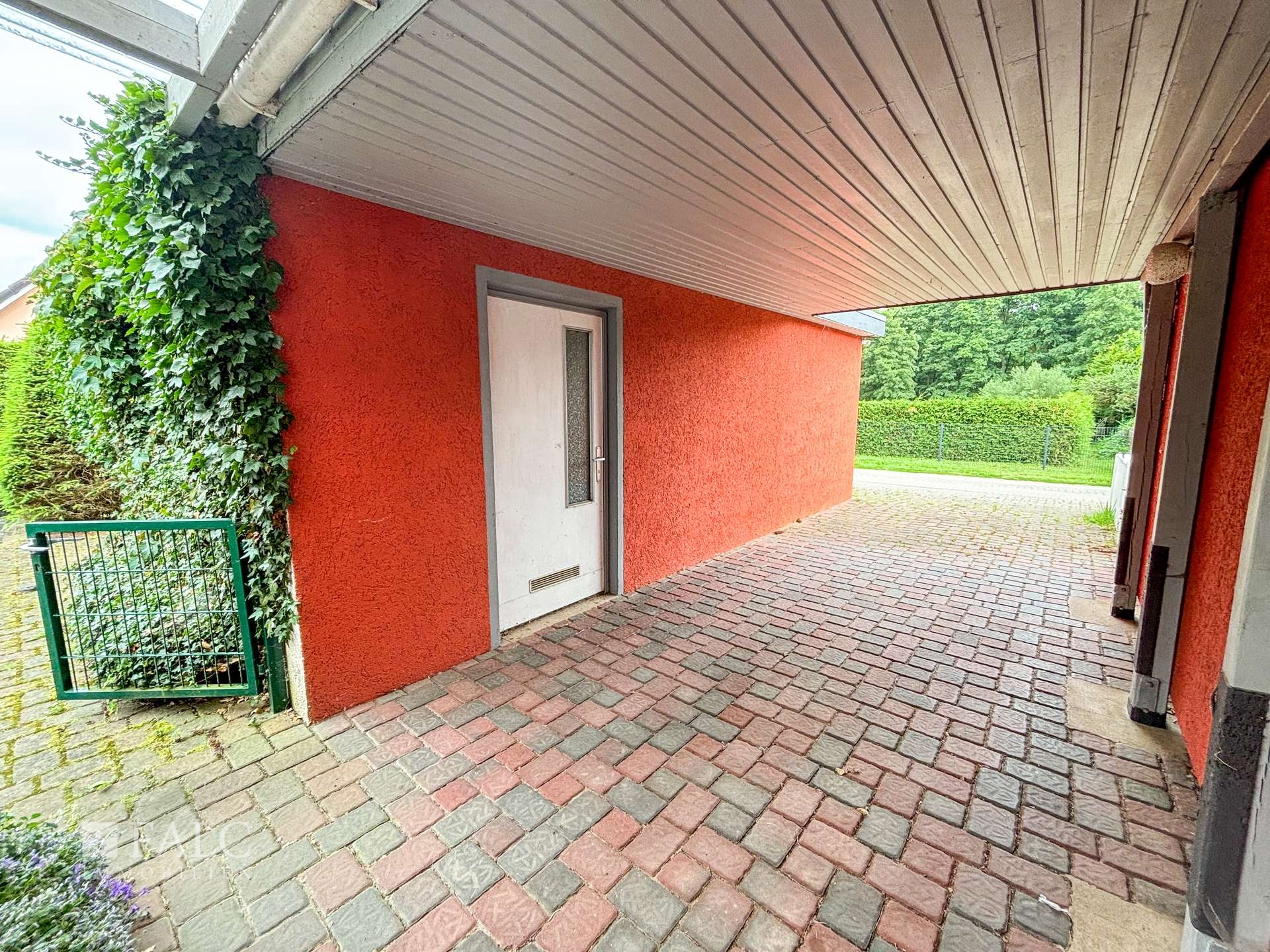 Für Ihre Fahrzeuge stehen eine Garage und ein Carport zur Verfügung. Direkt hinter der Garage befindet sich zusätzlich ein praktischer Geräteschuppen – ideal für Gartengeräte oder Heimwerker bedarf.