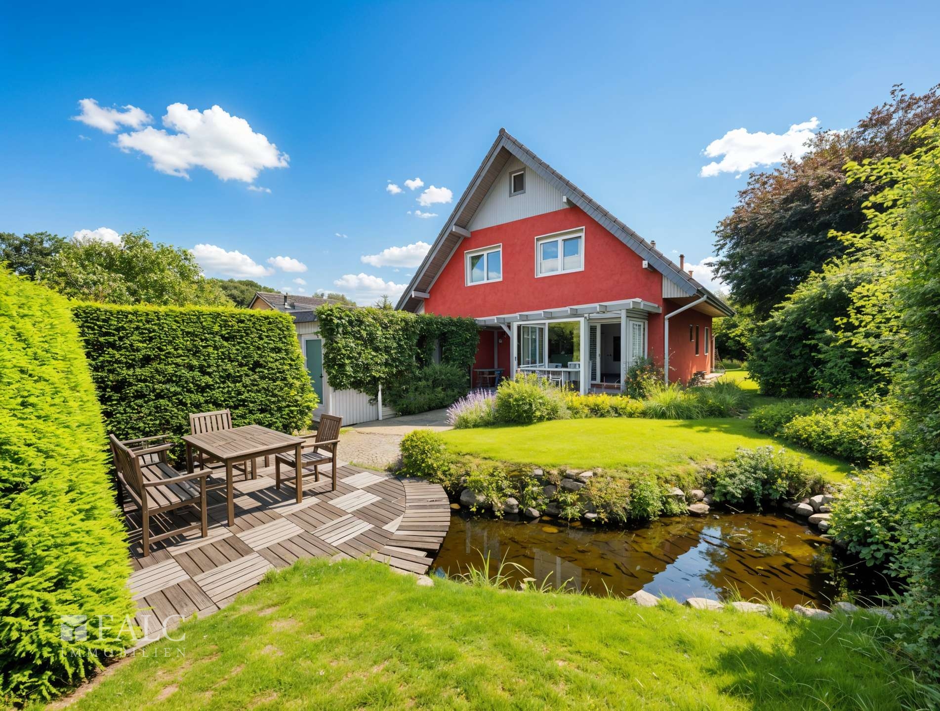 Der traumhafte Garten mit eigenem Teich lädt zu entspannten Stunden im Grünen ein – ein echtes Highlight für Naturliebhaber.