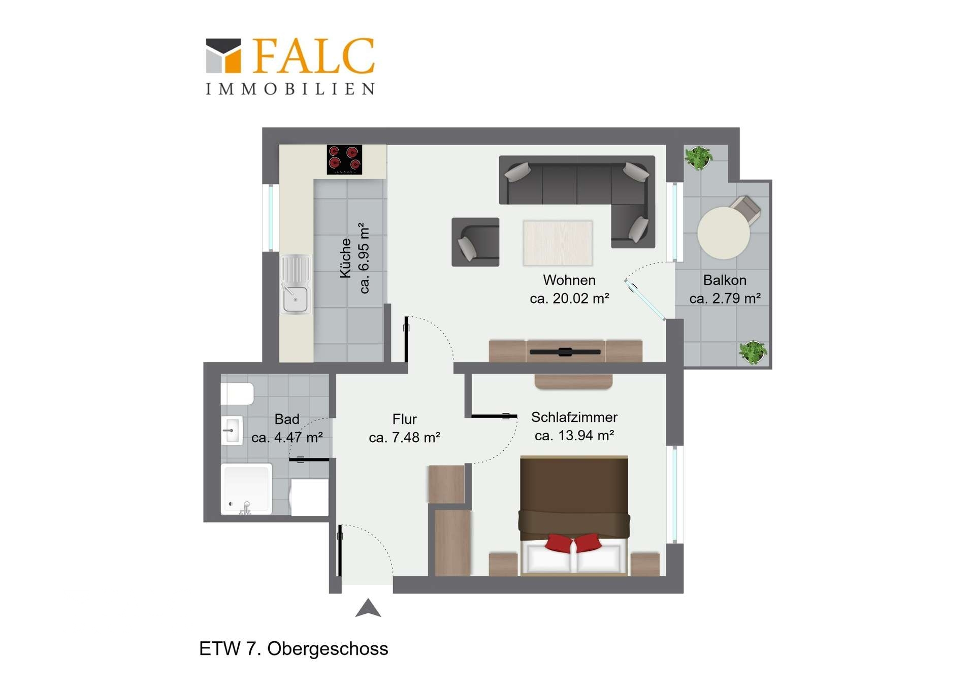 - 2-Zimmer-Whg. ca. 56 qm Wohnfläche mit Balkon im 7. OG