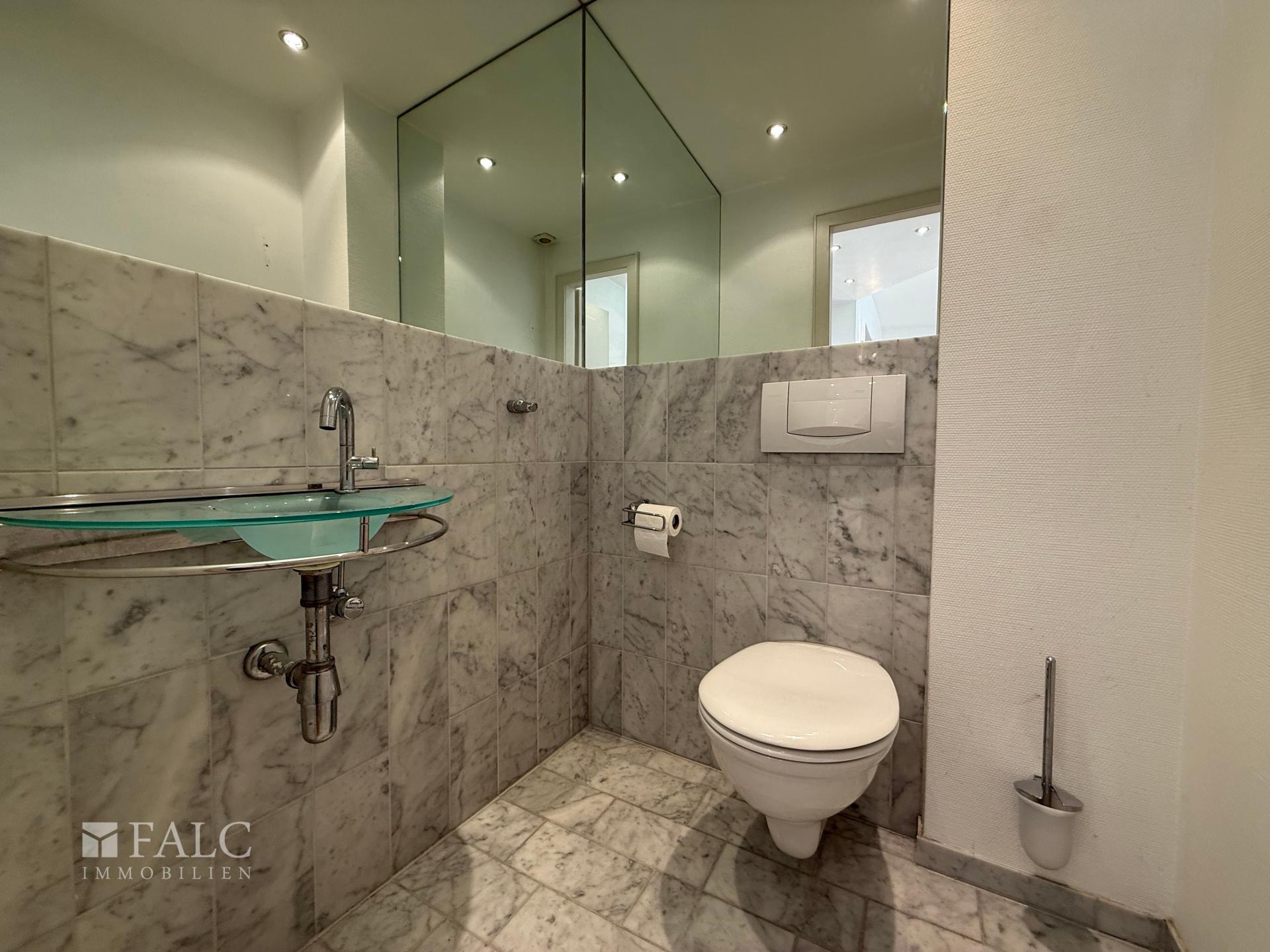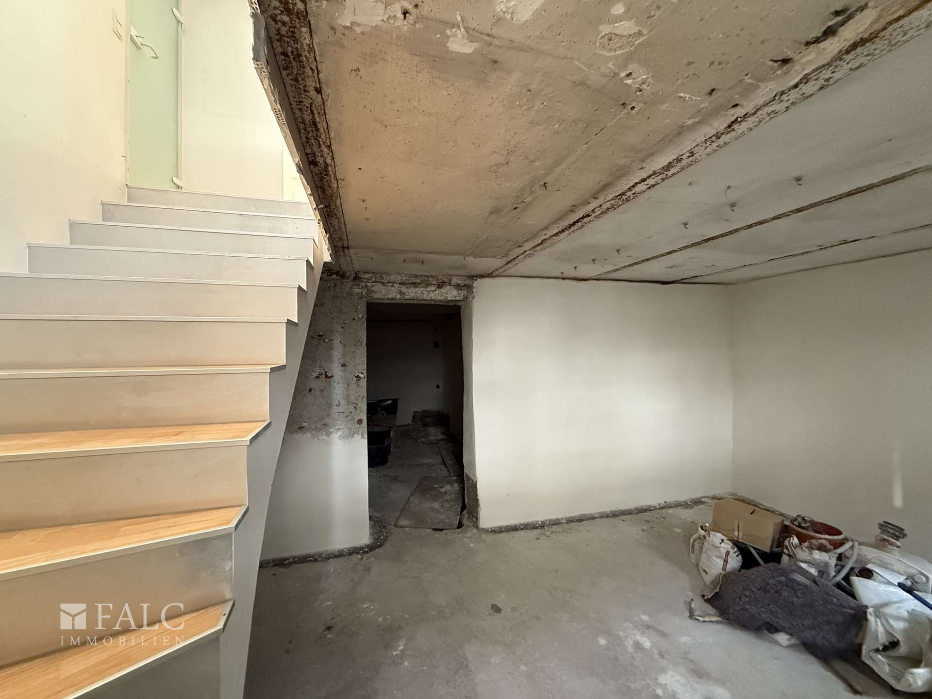 Im Untergeschoss bzw. Souterrain kam es zu einem Wasserschaden. Dieser wurde selbstverständlich sorgfältig und fachmännisch behoben. Die Eigentümer haben jedoch bewusst auf eine anschließende Sanierung verzichtet, um den zukünftigen Käufern die freie Wahl bei der Gestaltung des Badezimmers und weiterer Ausstattungsdetails zu lassen.