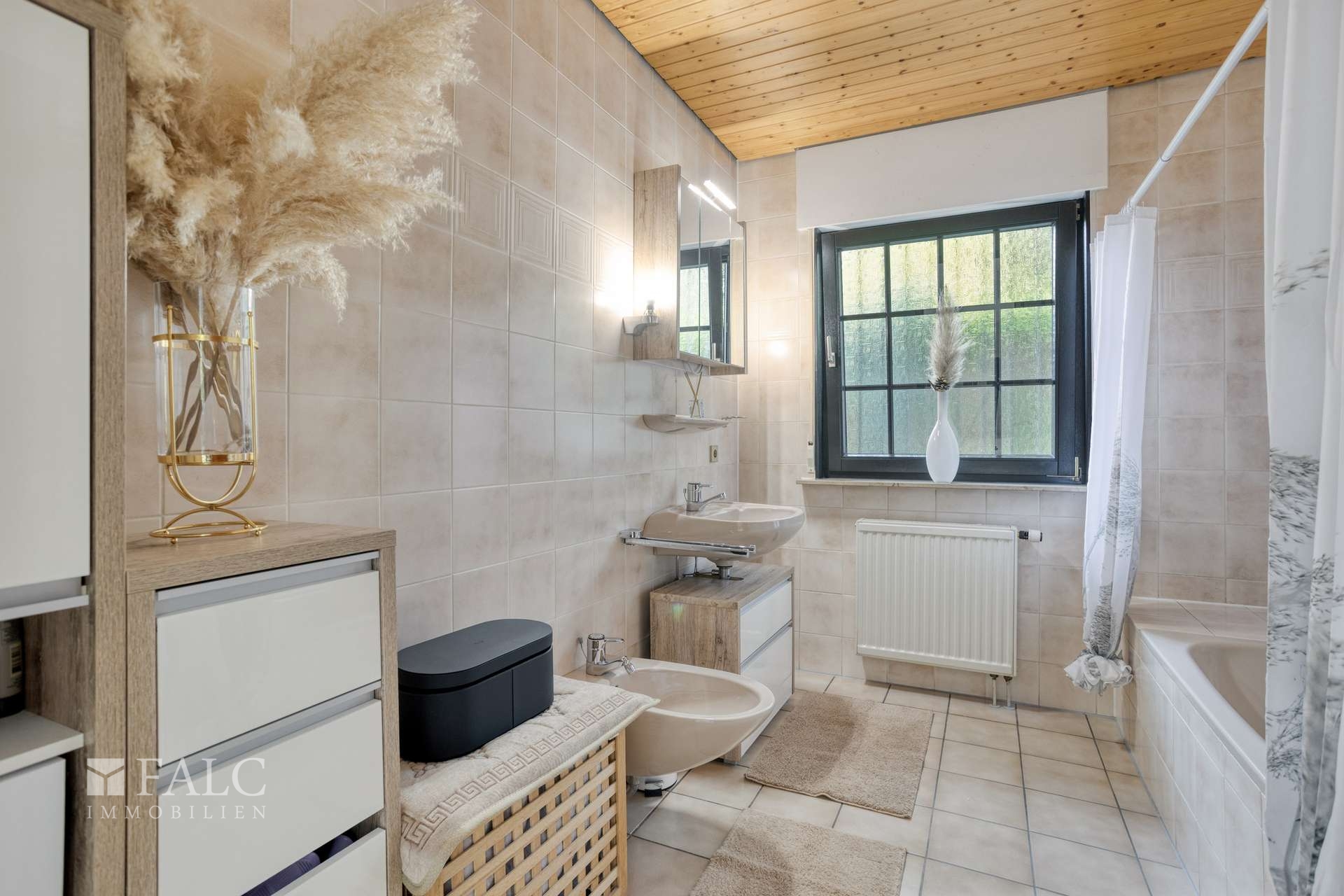 Schon beim Betreten empfängt Sie eine helle, freundliche Diele, die den Weg in das Herz des Hauses weist: den großzügigen Wohn- und Essbereich. Große Fenster lassen viel Licht herein und öffnen den Blick in den liebevoll angelegten Garten. Von hier aus gelangen Sie direkt auf die sonnige Terrasse – der ideale Platz für gemütliche Stunden mit Familie und Freunden. Die moderne Einbauküche mit integrierter Sitzecke lädt zum gemeinsamen Kochen und Genießen ein. Ebenfalls auf dieser Ebene befindet sich das Elternschlafzimmer und das Masterbad. Ein extra WC für den besonderen Comfort rundet das Raumangebot ab.