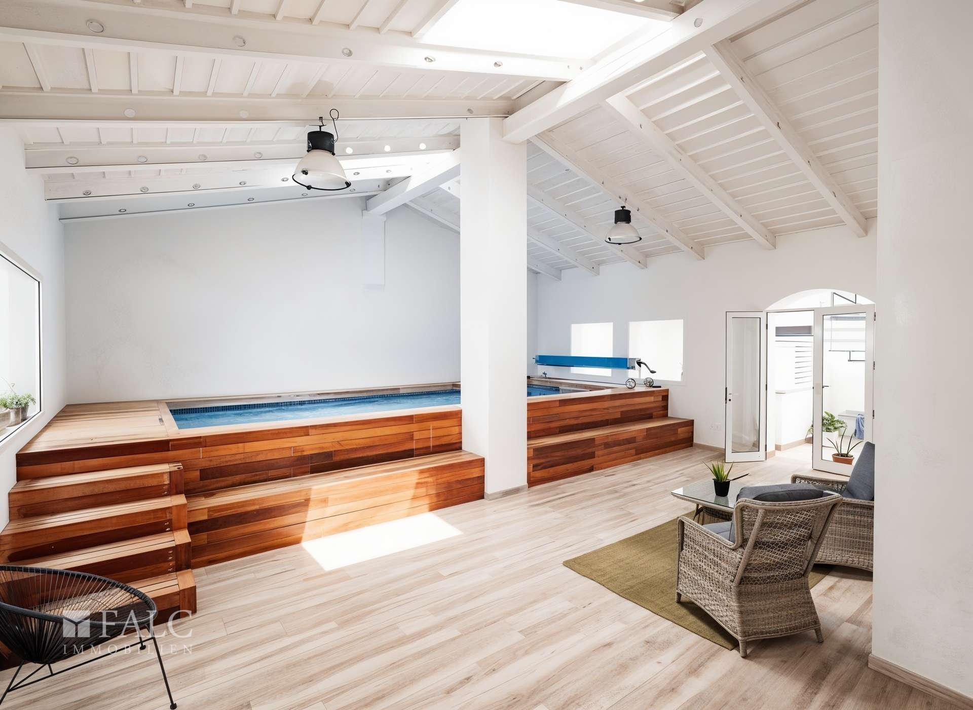 Zur Wohnanlage gehört zudem ein exklusiver Spa-Bereich, der nur den Bewohnern vorbehalten ist. Ein beheizter Innenpool ermöglicht Badevergnügen das ganze Jahr über, und die moderne Sauna lädt zu erholsamen Wellnessmomenten ein.