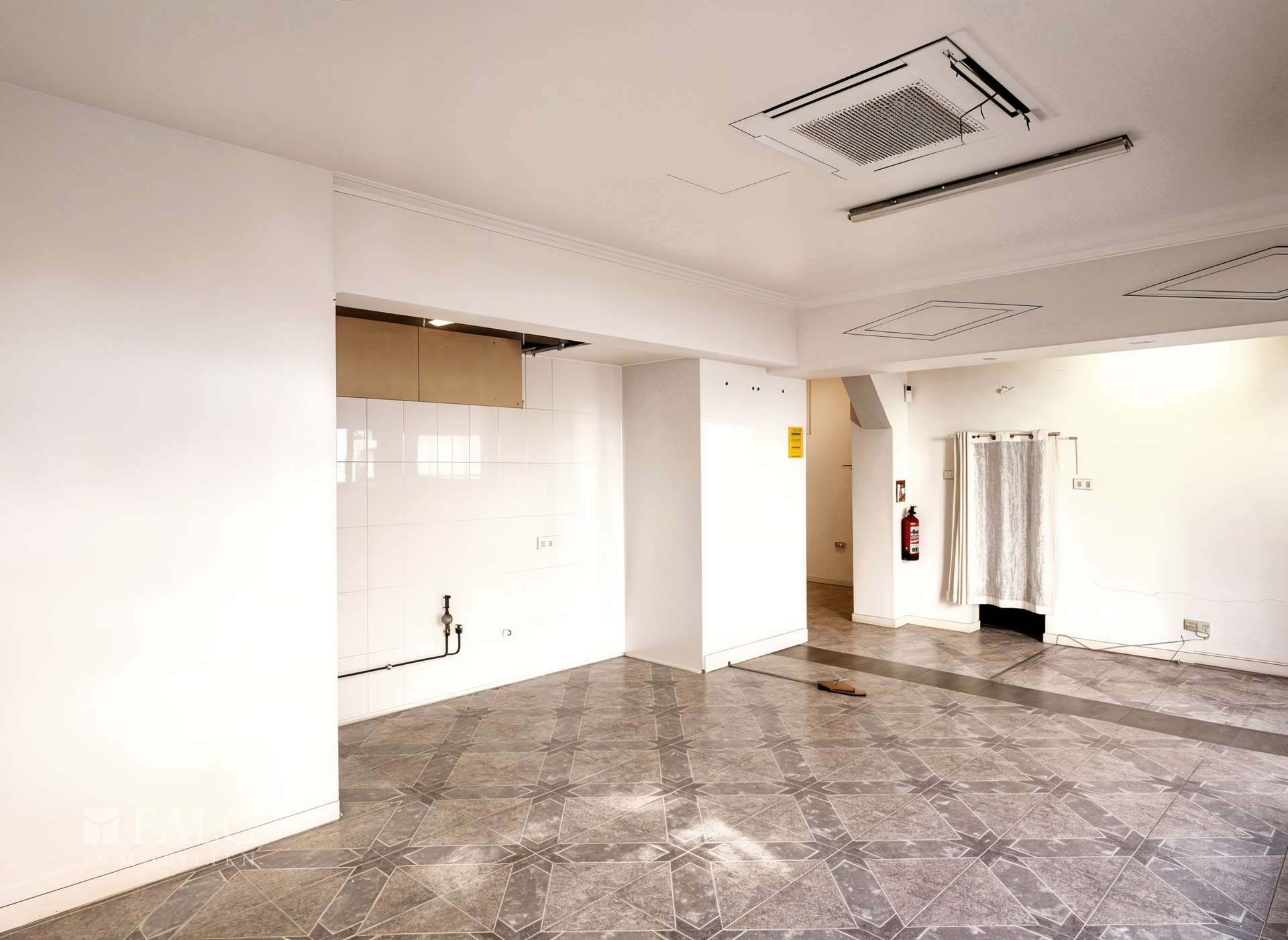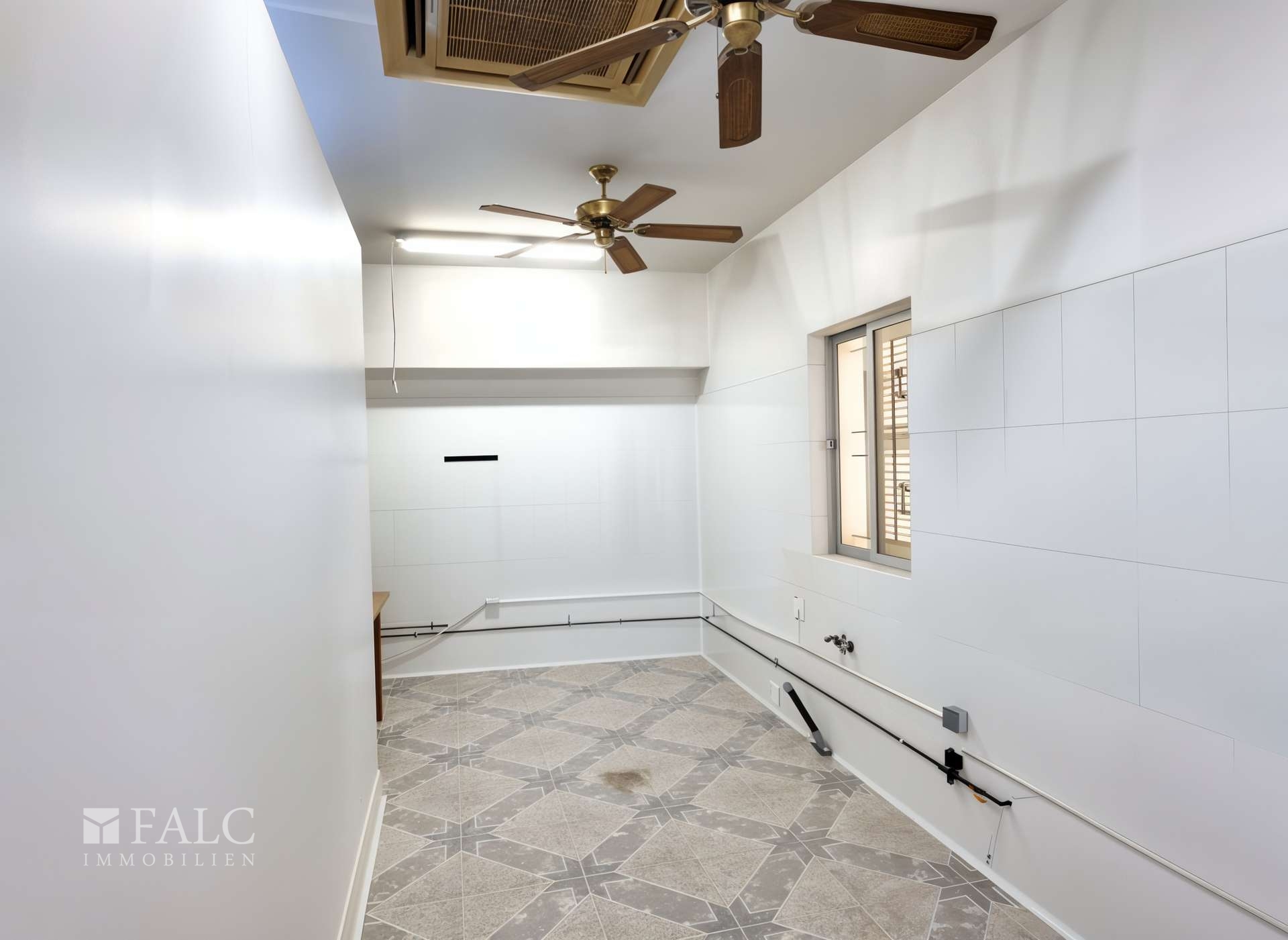 Im Erdgeschoss befindet sich derzeit eine gewerblich genutzte Fläche (Ladenlokal) mit mehreren Räumen sowie einem Patio. Diese Ebene eignet sich ideal zur Umgestaltung in Wohnraum oder zur Integration einer Garage - je nach individuellem Bedarf.