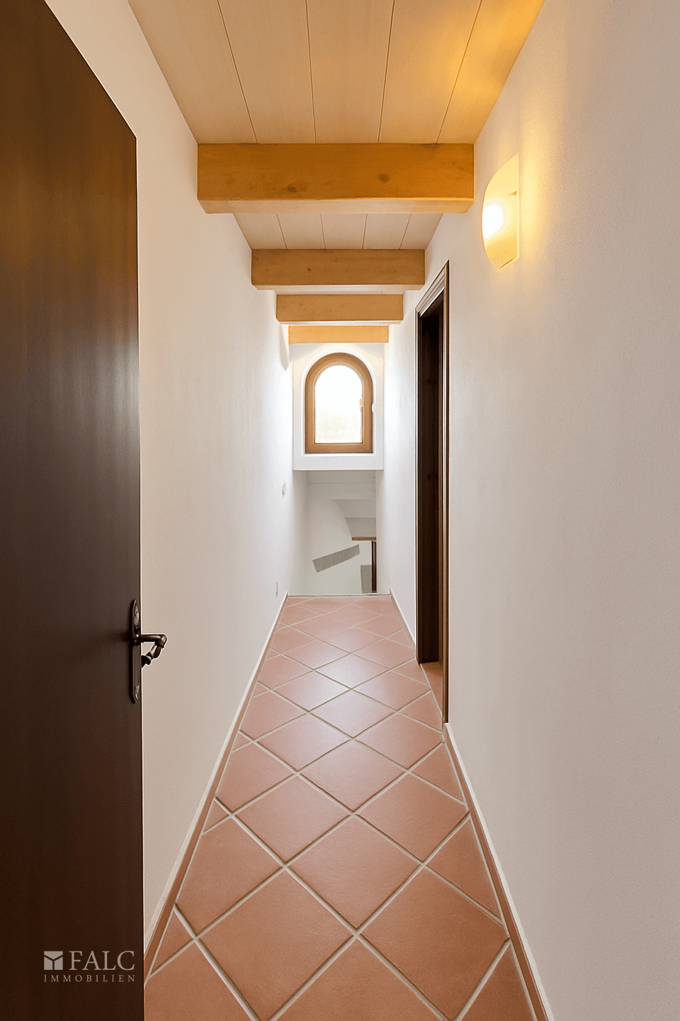 -Holzbalkendecken, Terrakotta-Böden, Holzfensterläden