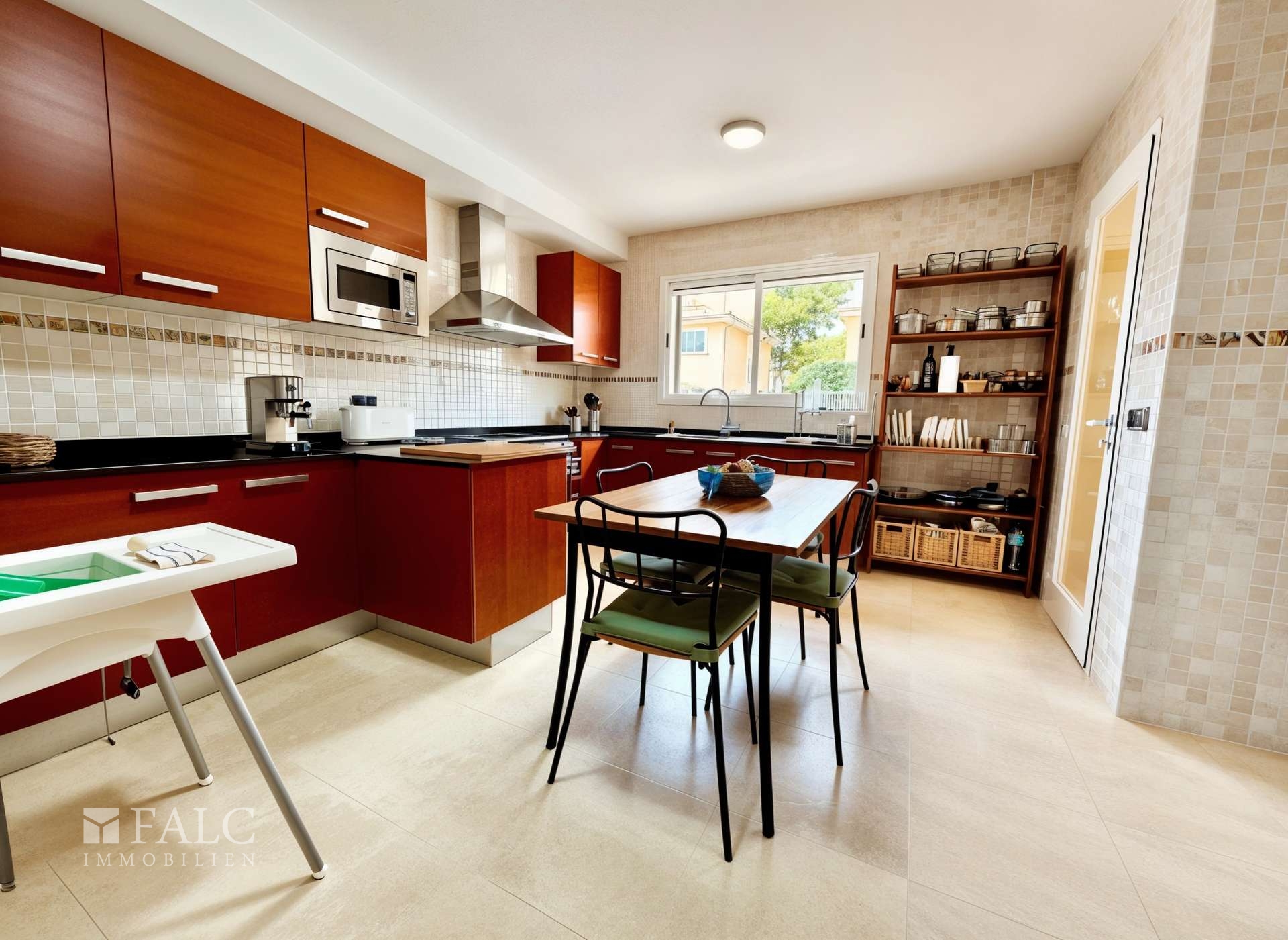 Die Immobilie verfügt über eine Einbauküche, die funktional gestaltet ist und direkt zum gemeinsamen Kochen einlädt. Geflieste Böden sorgen für ein modernes, pflegeleichtes Wohngefühl – ideal auch für Familien.