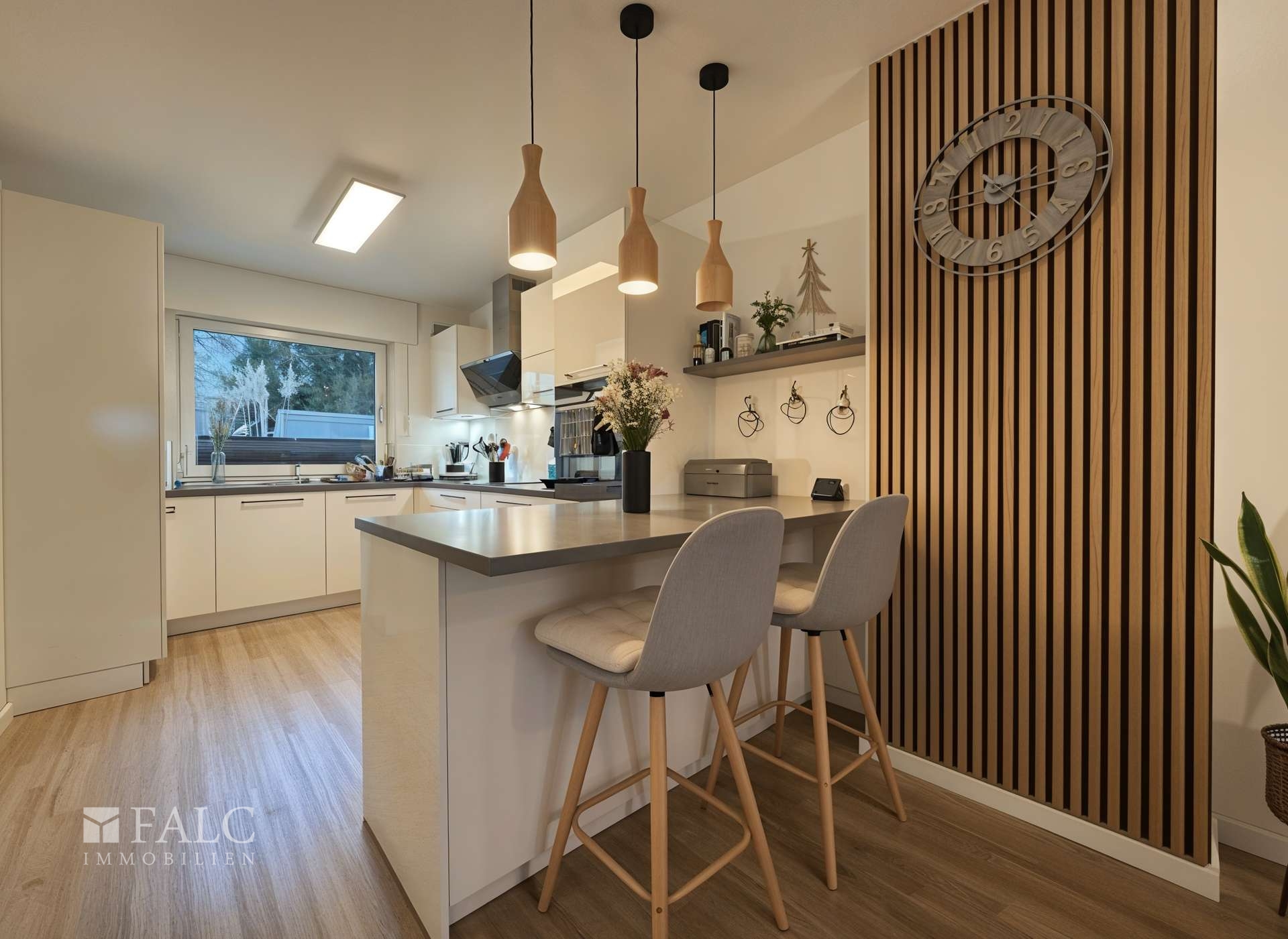 Die offen gestaltete Einbauküche ist noch nicht im Kaufpreis enthalten, kann aber nach Absprache gerne übernommen werden. Sie bietet ausreichend Stauraum sowie moderne Ausstattung für den täglichen Gebrauch.