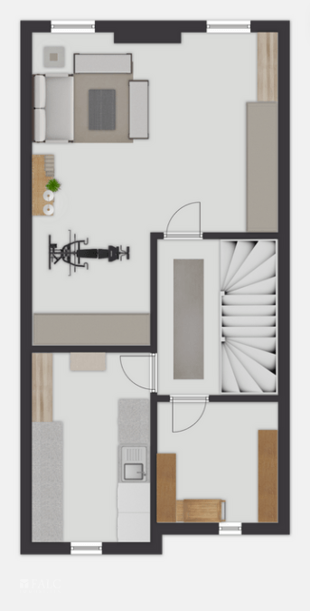 Im Erdgeschoss erwartet Sie ein offener und moderner Wohnbereich, in den die Küche harmonisch integriert ist. Der großzügige Wohn- und Essbereich bietet viel Platz für den Alltag sowie für gemeinsame Abende mit Familie und Freunden. Von hier aus besteht auch der direkte Zugang zum Außenbereich. Ergänzt wird diese Ebene durch ein Gäste-WC.