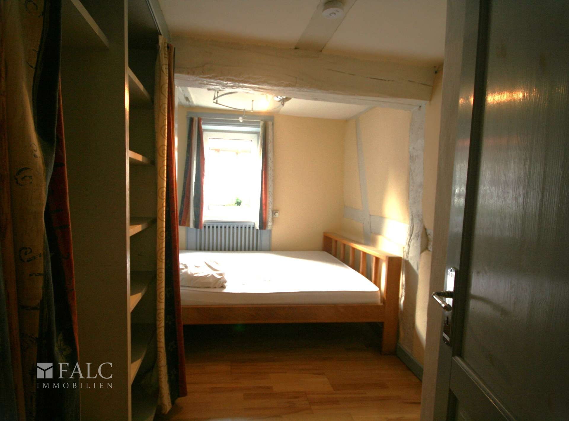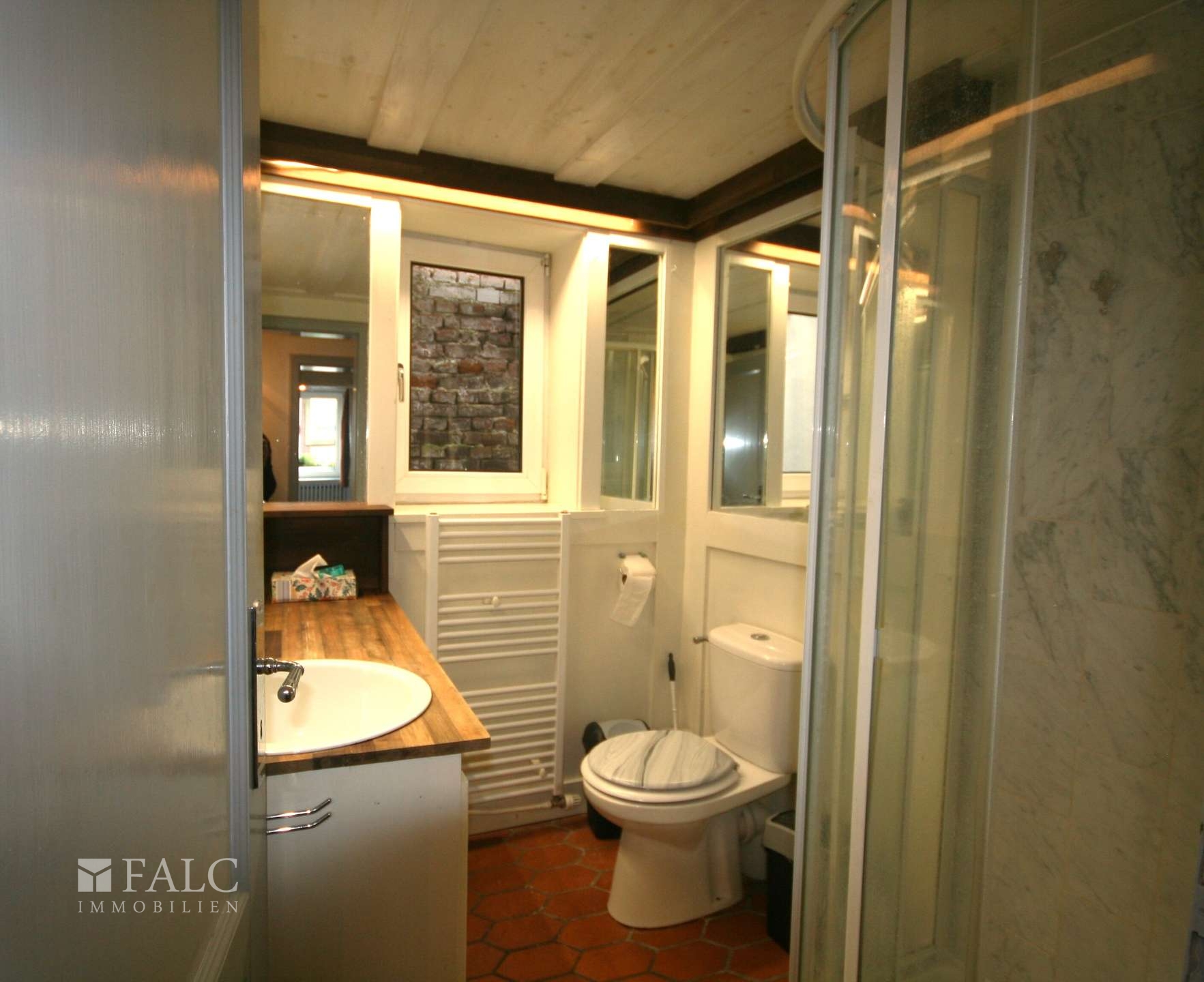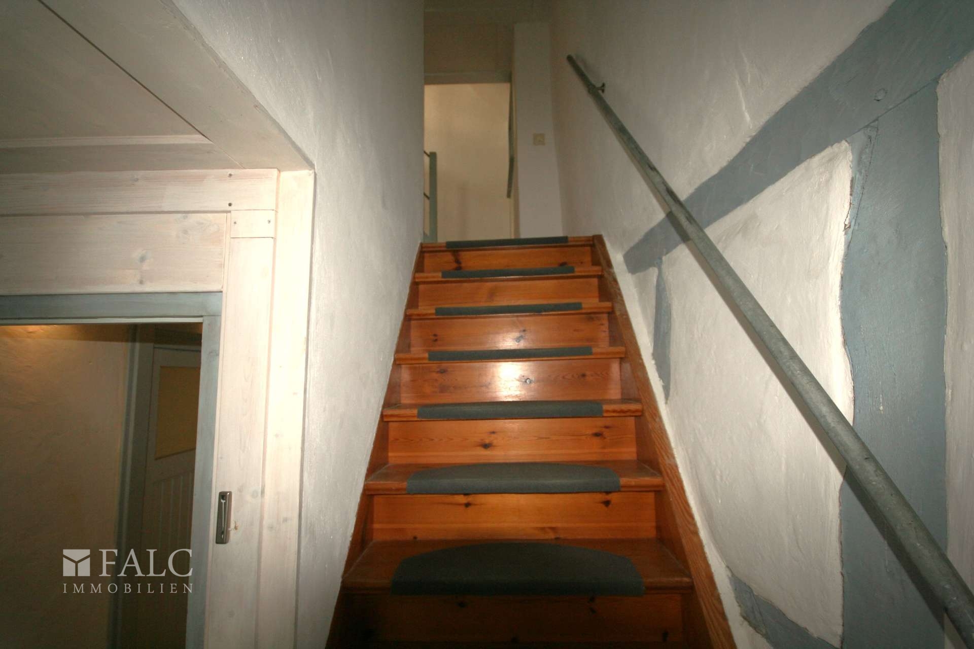 Vom Flur aus führt eine Treppe zu einer weiteren eigenständigen Wohnung, mit drei Zimmern, im Obergeschoß des Hauses.