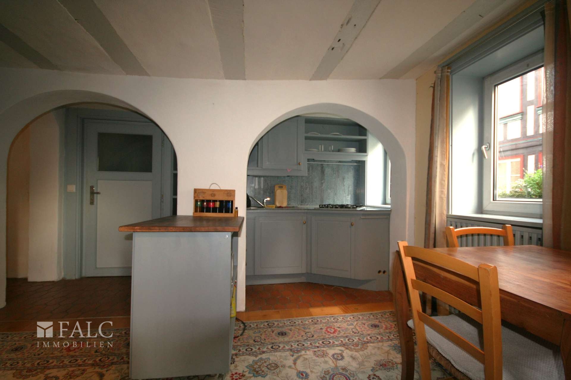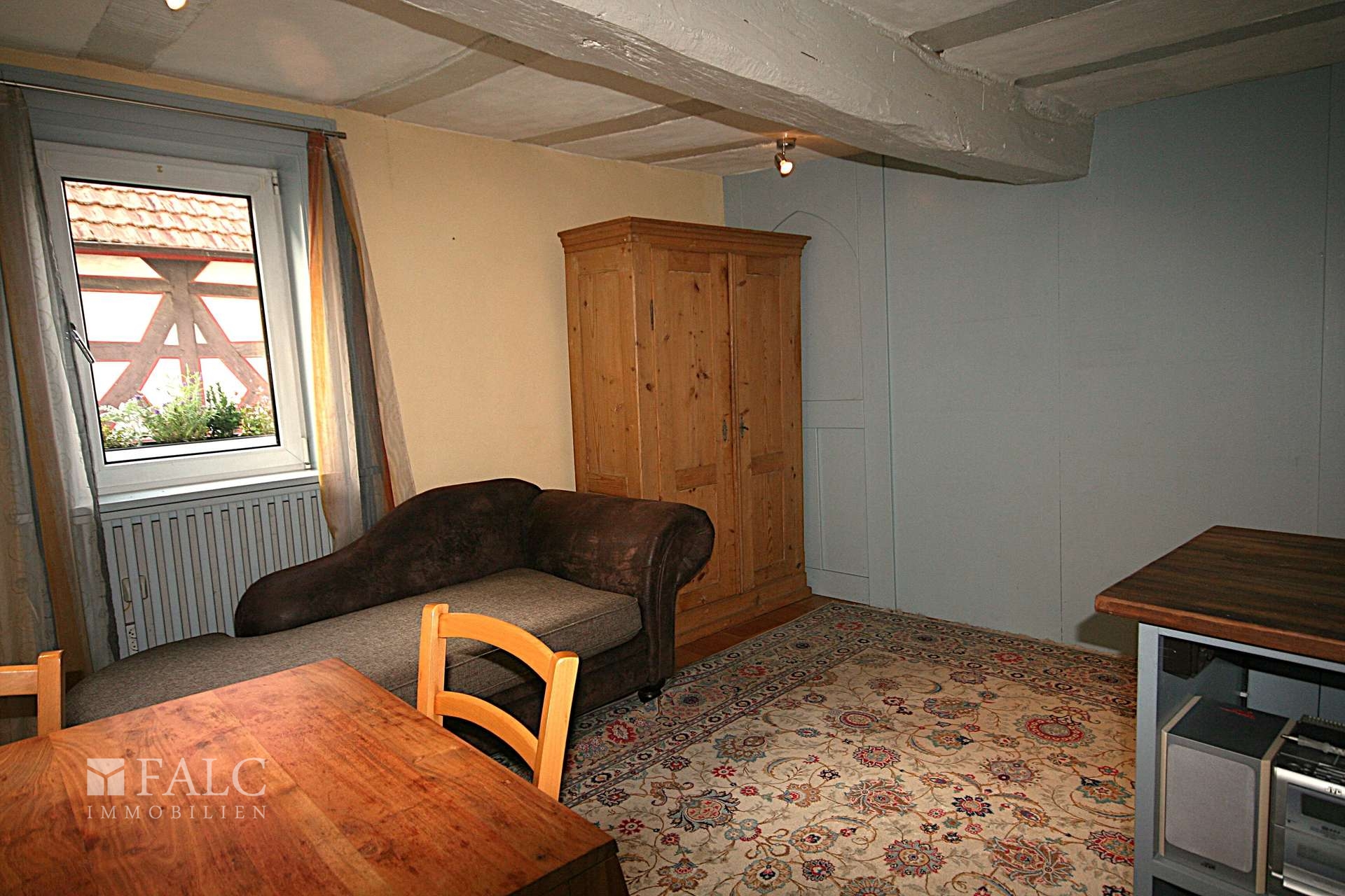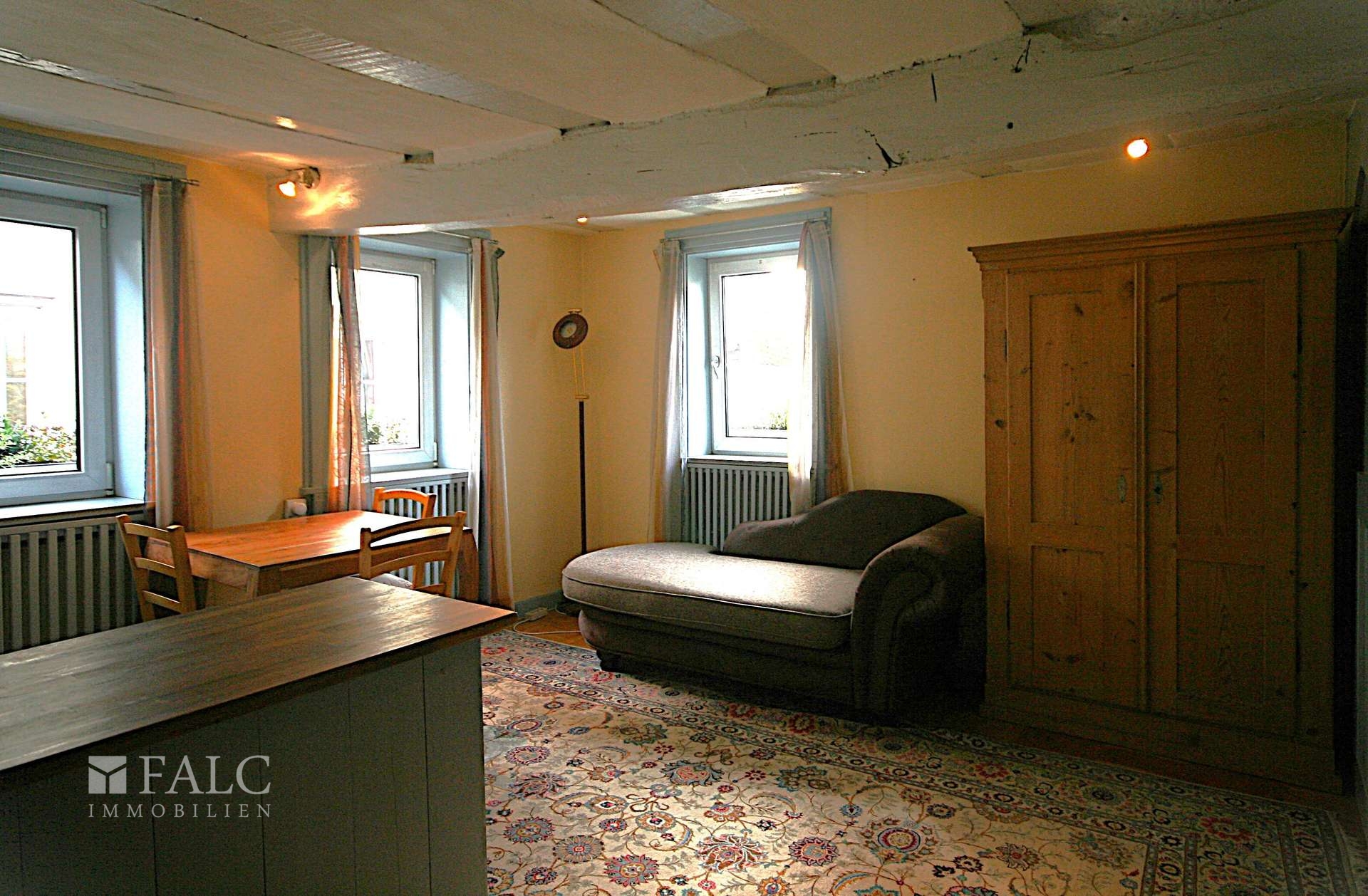 Vom Flur aus führt eine Treppe zu einer weiteren eigenständigen Wohnung, mit drei Zimmern, im Obergeschoß des Hauses.