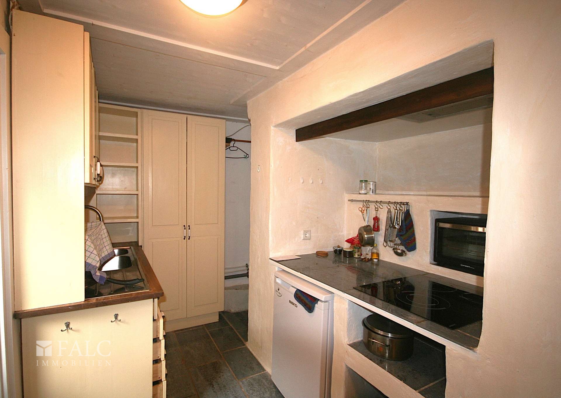 Angrenzend an das Wohnzimmer befindet sich die moderne Küche, die mit Einbaugeräten ausgestattet ist. Die offene Gestaltung ermöglicht es, während des Kochens mit der Familie oder Gästen in Kontakt zu bleiben. Ein praktischer Abstellraum bietet zusätzlichen Stauraum für Vorräte und Haushaltsgeräte.