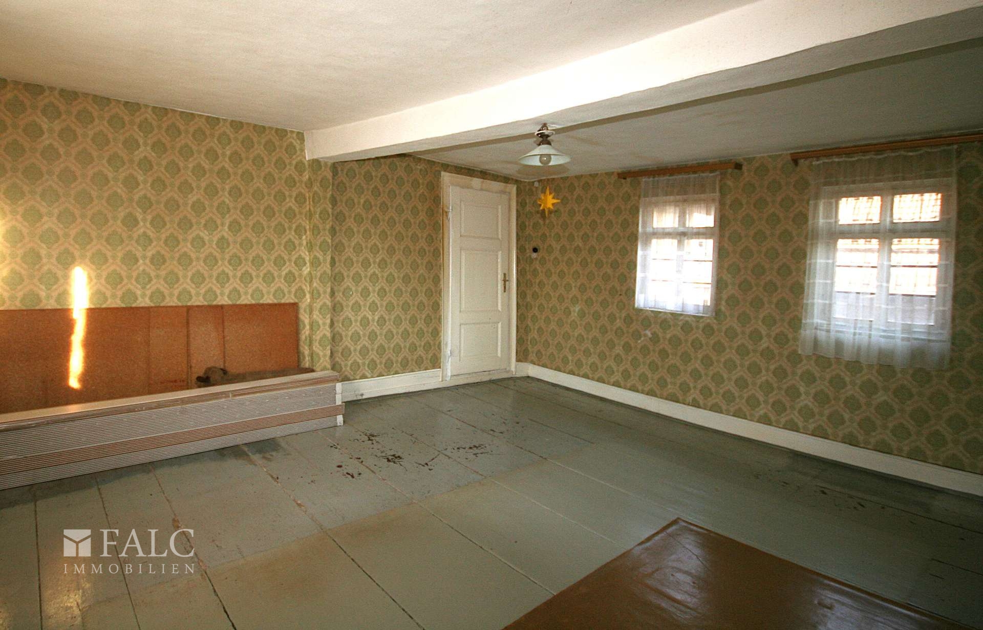 Im Inneren zeigen die Räume eine klassische Aufteilung mit gut nutzbaren Zimmergrößen. Helle Fensterflächen sorgen für angenehmes Tageslicht. Die Küche ist funktional angelegt und bietet Platz für einen Essbereich. Das Badezimmer ist zeitlos gefliest und mit Badewanne ausgestattet. Zusätzlich steht ein Keller zur Verfügung, ideal für Vorräte, Hobby oder als praktische Abstellfläche.