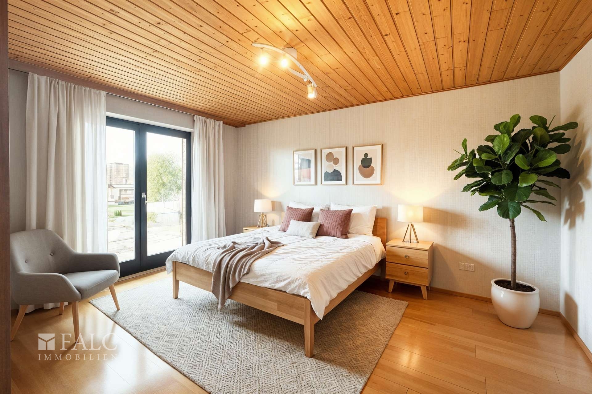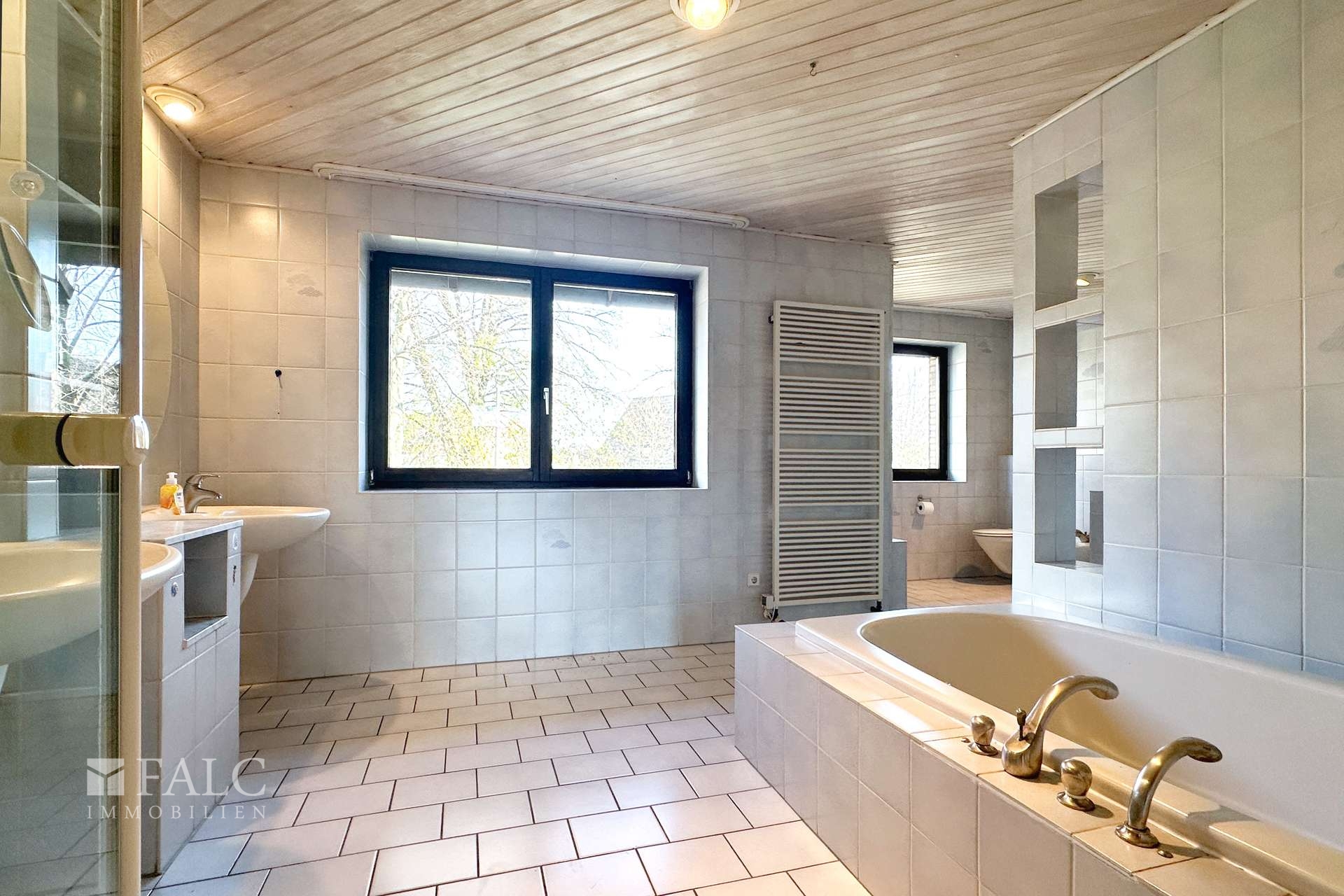 Im Obergeschoss erwarten Sie vier gut geschnittene Schlafzimmer. Jedes Zimmer kann individuell genutzt werden – beispielsweise als Kinderzimmer, Büro oder Gästezimmer. Das große Tageslichtbad ist modern ausgestattet und verfügt neben zwei Waschplätzen, einer Wanne und einer Dusche zusätzlich über ein Bidet und ein Urinal.