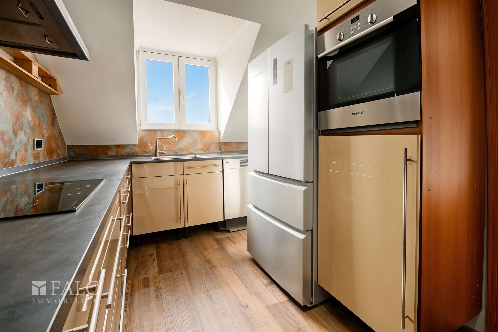Die Wohnung erstreckt sich über zwei Ebenen und bietet alles, was man sich zum Wohlfühlen wünscht: ein helles Wohnzimmer mit Zugang zur Loggia, eine moderne Küche, ein freundliches Tageslichtbad sowie ein gemütliches Schlafzimmer im Spitzboden.