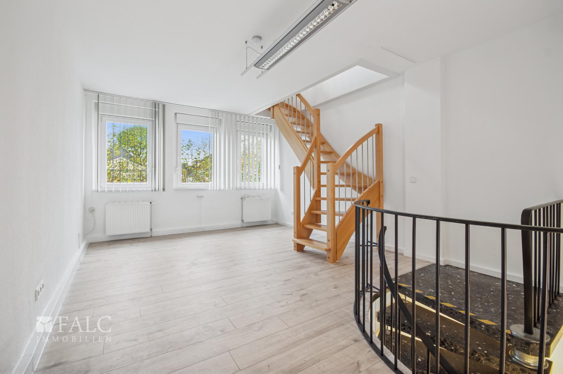 Unser ansprechendes Objekt vereint ein tolles Ladenlokal im Erdgeschoss mit flexibel nutzbaren Büroflächen in den oberen Etagen. Unten können Sie problemlos Kunden empfangen und Publikumsverkehr ansprechen, während Ihnen oben mehrere ruhige Arbeitsräume zur Verfügung stehen