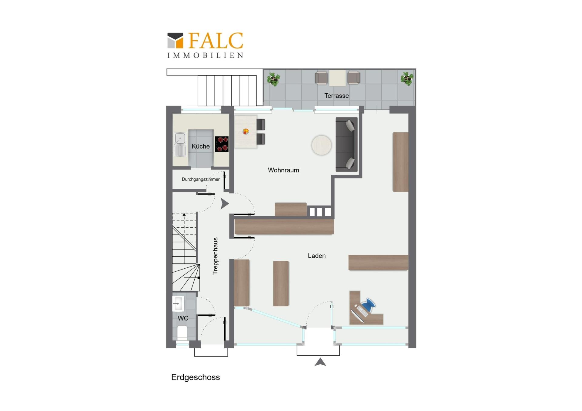 Eine Besonderheit stellt die kleine Gewerbeeinheit im Erdgeschoss dar. Sie kann flexibel selbst genutzt, weitervermietet oder auf Wunsch zu zusätzlicher Wohnfläche umgestaltet werden – und eröffnet damit interessante Optionen für Wohnen und Arbeiten unter einem Dach.