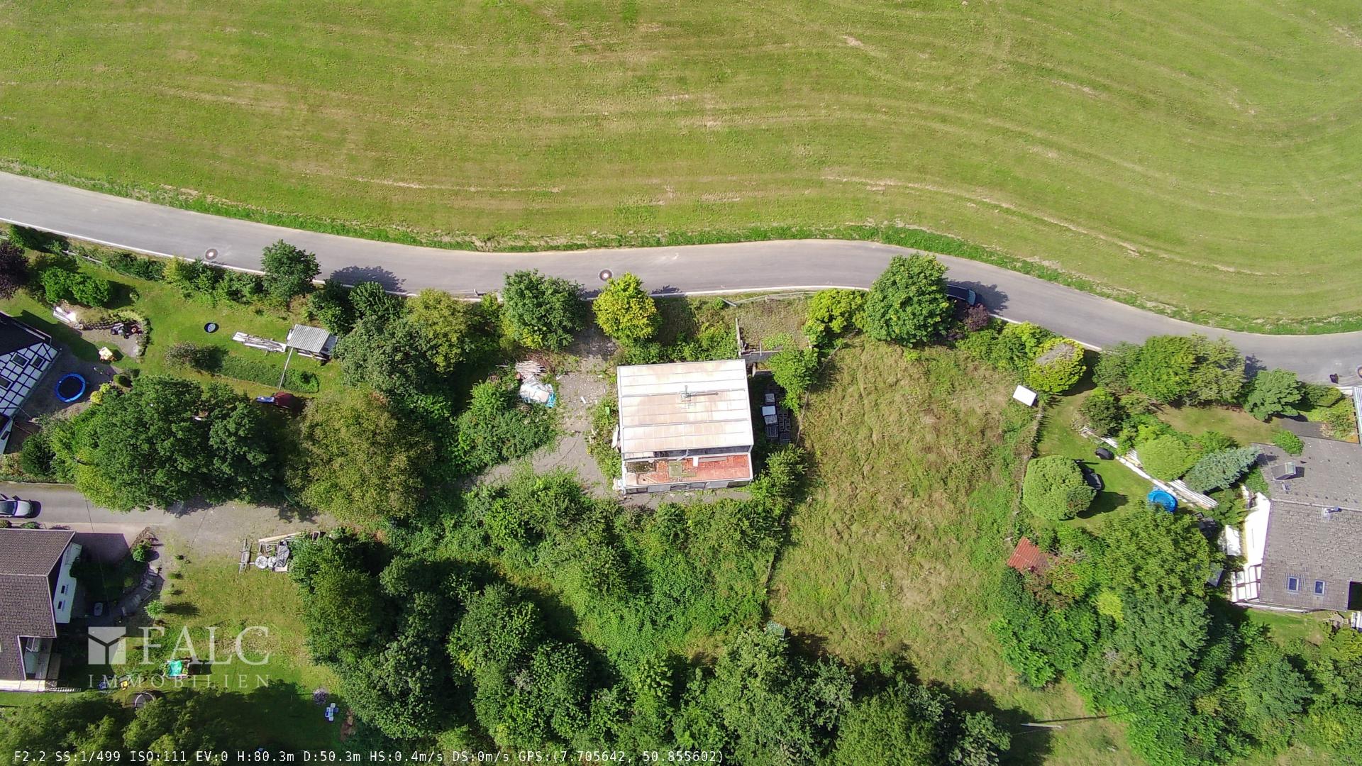 Auf dem oberen Grundstück befindet sich derzeit ein Containerhaus, das abgerissen und vollständig entsorgt wird. Die bestehende Bodenplatte bleibt erhalten und bildet die Basis für den Neubau eines geschlossenen Rohbaus, der bereits geplant und genehmigt ist.
