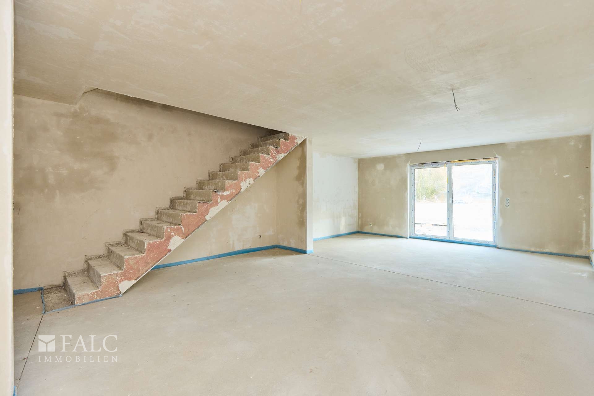Nach erteilter Baugenehmigung Ende 2024 sind die Arbeiten nun in vollem Gange und der Rohbau inklusive Außenputz und Fenster bereits abgeschlossen.
