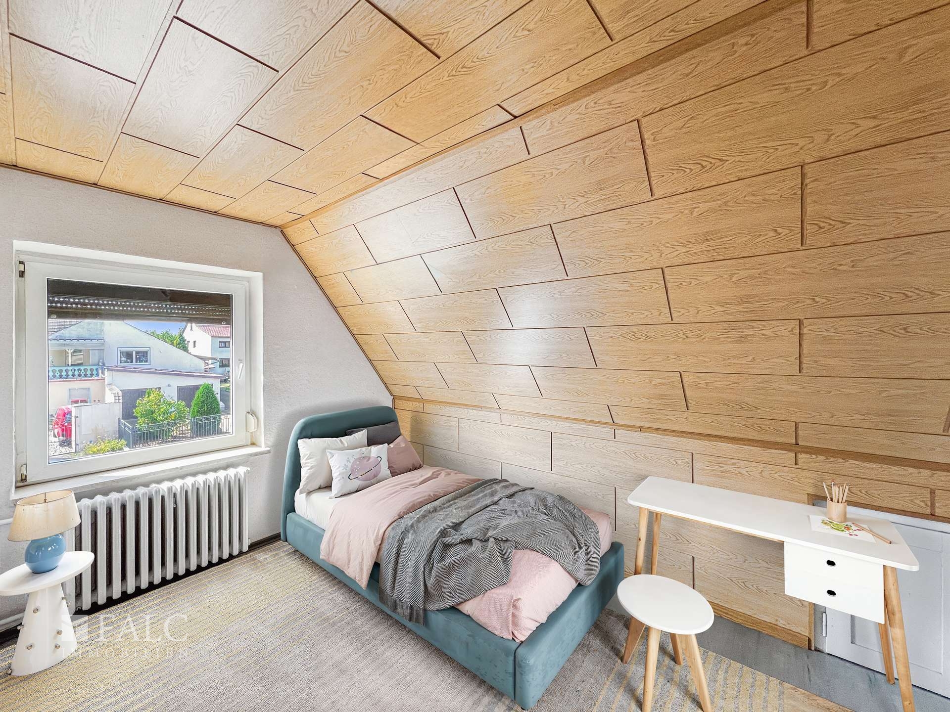 Im Dachgeschoss befinden sich ein gemütliches Elternschlafzimmer sowie zwei helle Kinderzimmer, die auch als Gästezimmer oder Homeoffice genutzt werden können. Ein Badezimmer mit Badewanne sorgt hier für zusätzlichen Komfort und macht das Obergeschoss zu einem angenehmen Rückzugsort für die ganze Familie.