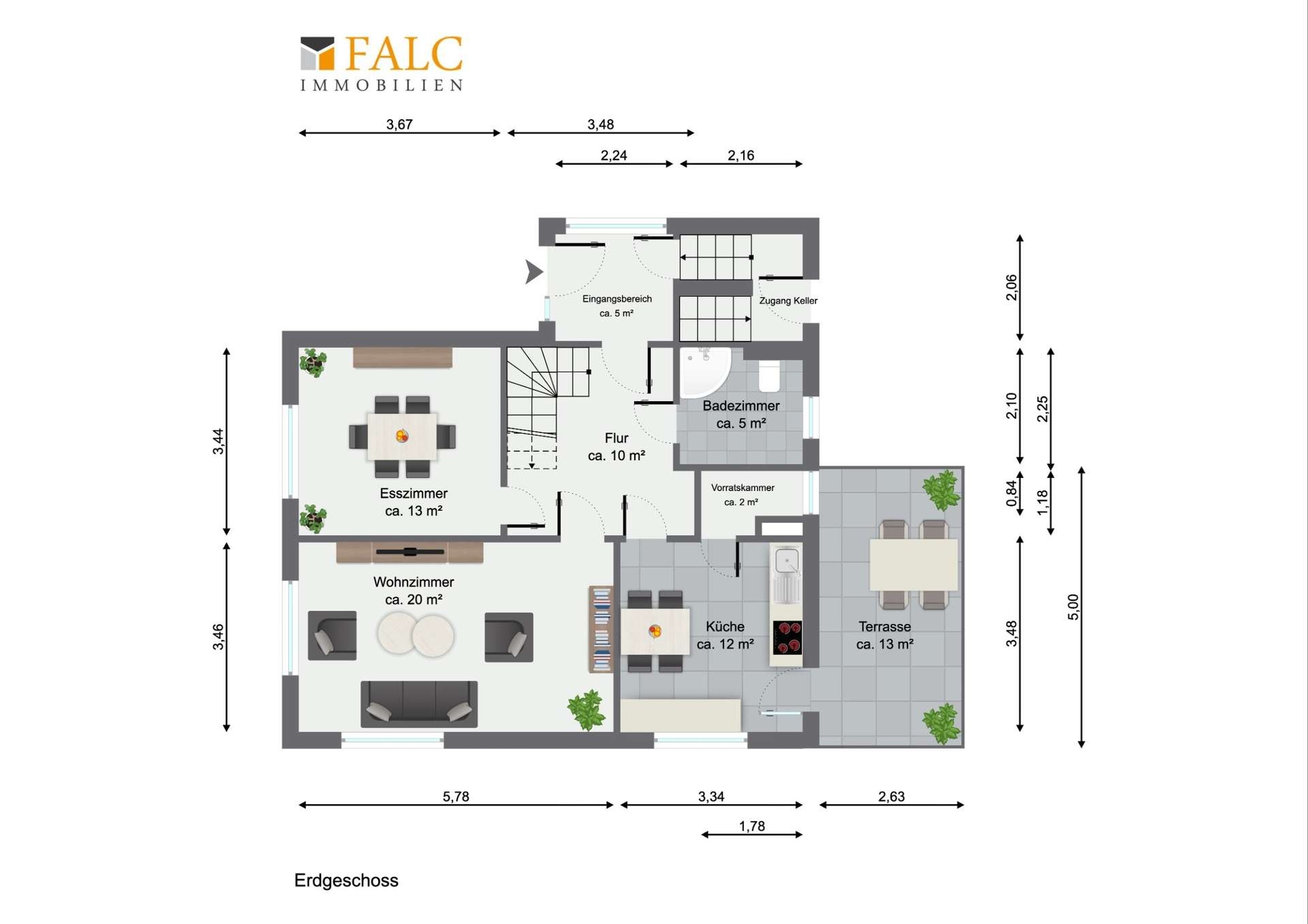 Zur Info, aufgrund der 3D-Perspektive wirken die Räumlichkeiten in der Regel kleiner als in der Realität.