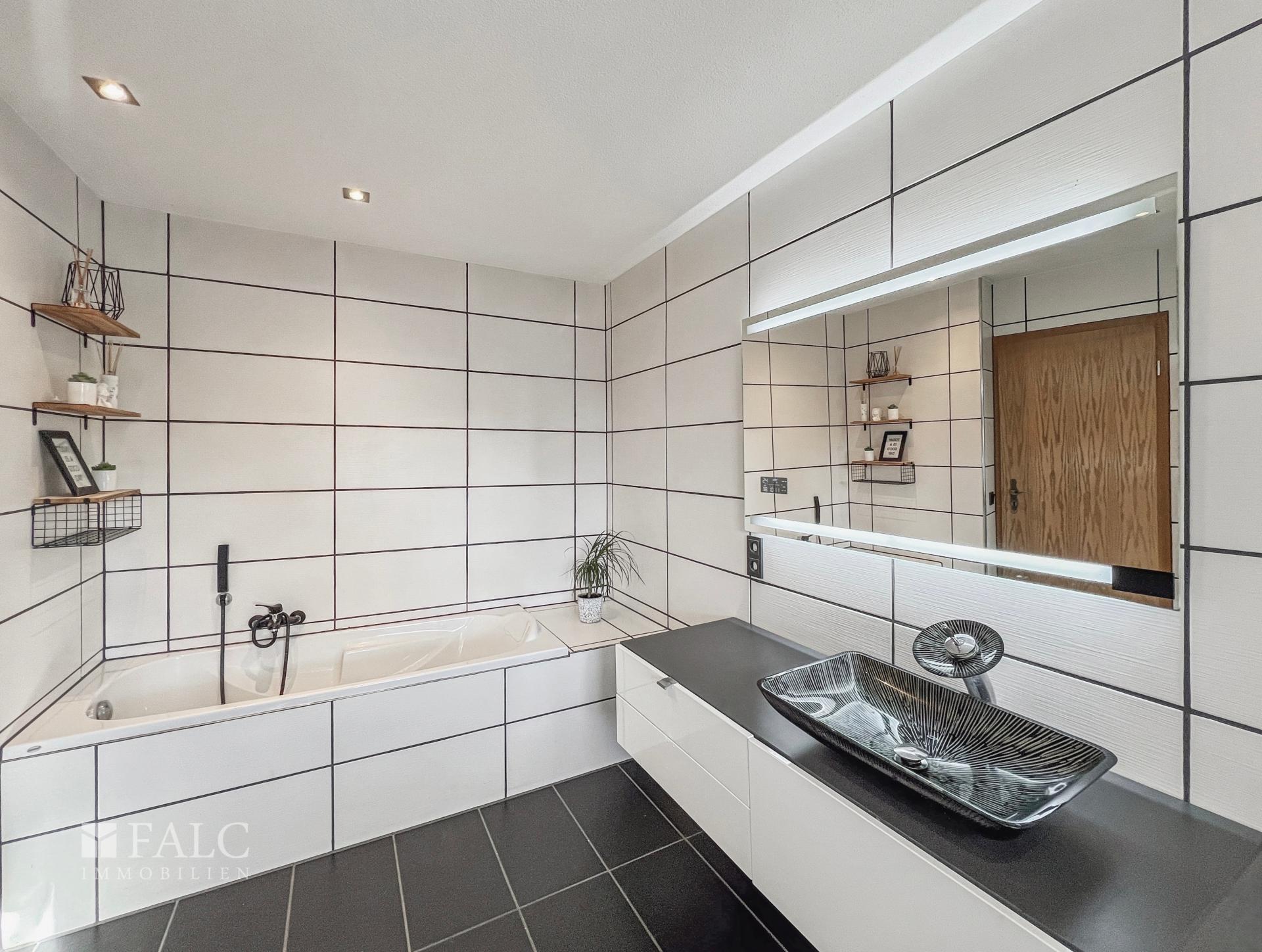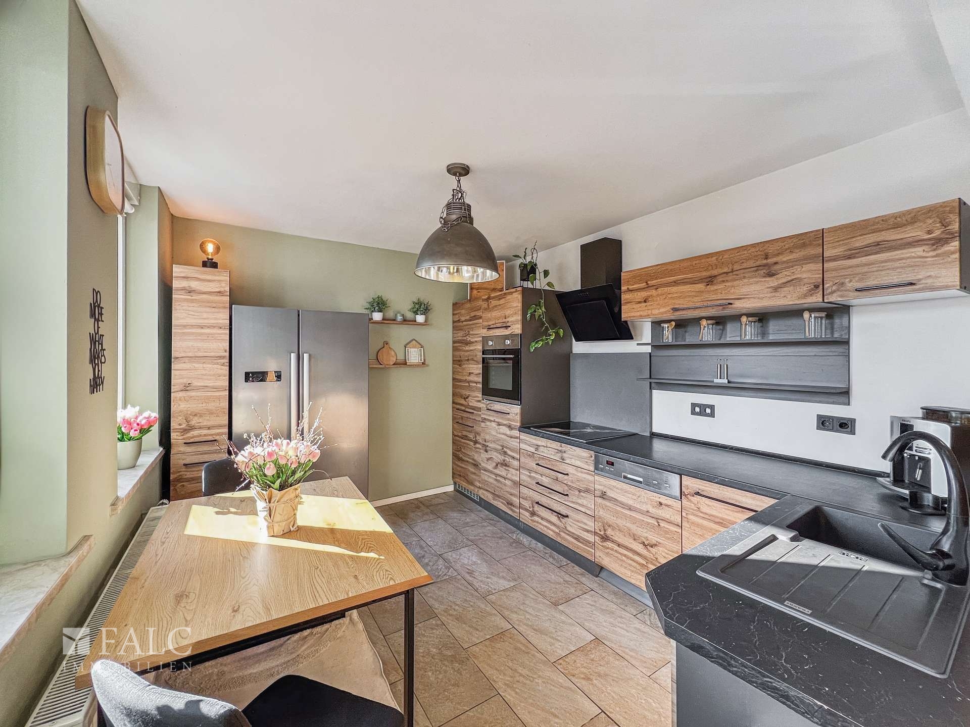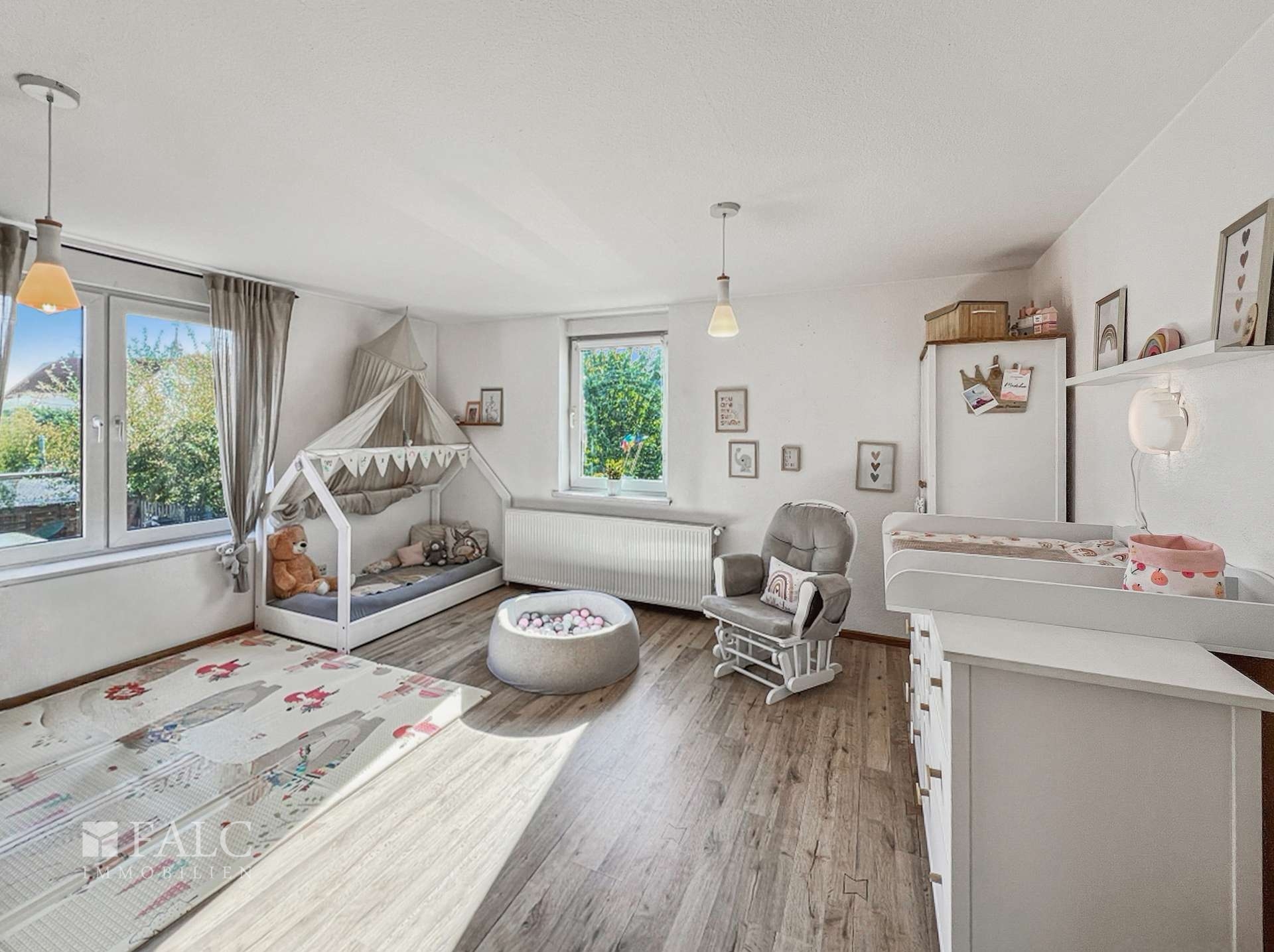 Die Hauptwohnung mit ca. 117 m² Wohnfläche befindet sich im Obergeschoss und wurde im Jahr 2019 hochwertig modernisiert. Helle Räume, ein durchdachtes Raumkonzept und moderne Ausstattung sorgen für ein angenehmes Wohngefühl. Das Wohnzimmer wurde zwischenzeitlich in zwei separate Zimmer unterteilt, kann jedoch jederzeit wieder zu einem großen, offenen Wohnraum zusammengeführt werden – ganz nach Ihren persönlichen Vorstellungen. Das ca. 24 m² große Kinderzimmer, das Schlafzimmer sowie das stilvolle Badezimmer mit Badewanne und bodengleicher Dusche lassen keine Wünsche offen. Die moderne Einbauküche, die im Kaufpreis enthalten ist, fügt sich harmonisch in das offene Wohnkonzept ein. Eine eigene Terrasse mit schönem Ausblick lädt dazu ein, den Feierabend entspannt ausklingen zu lassen.